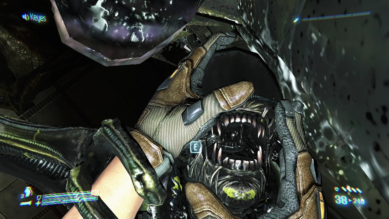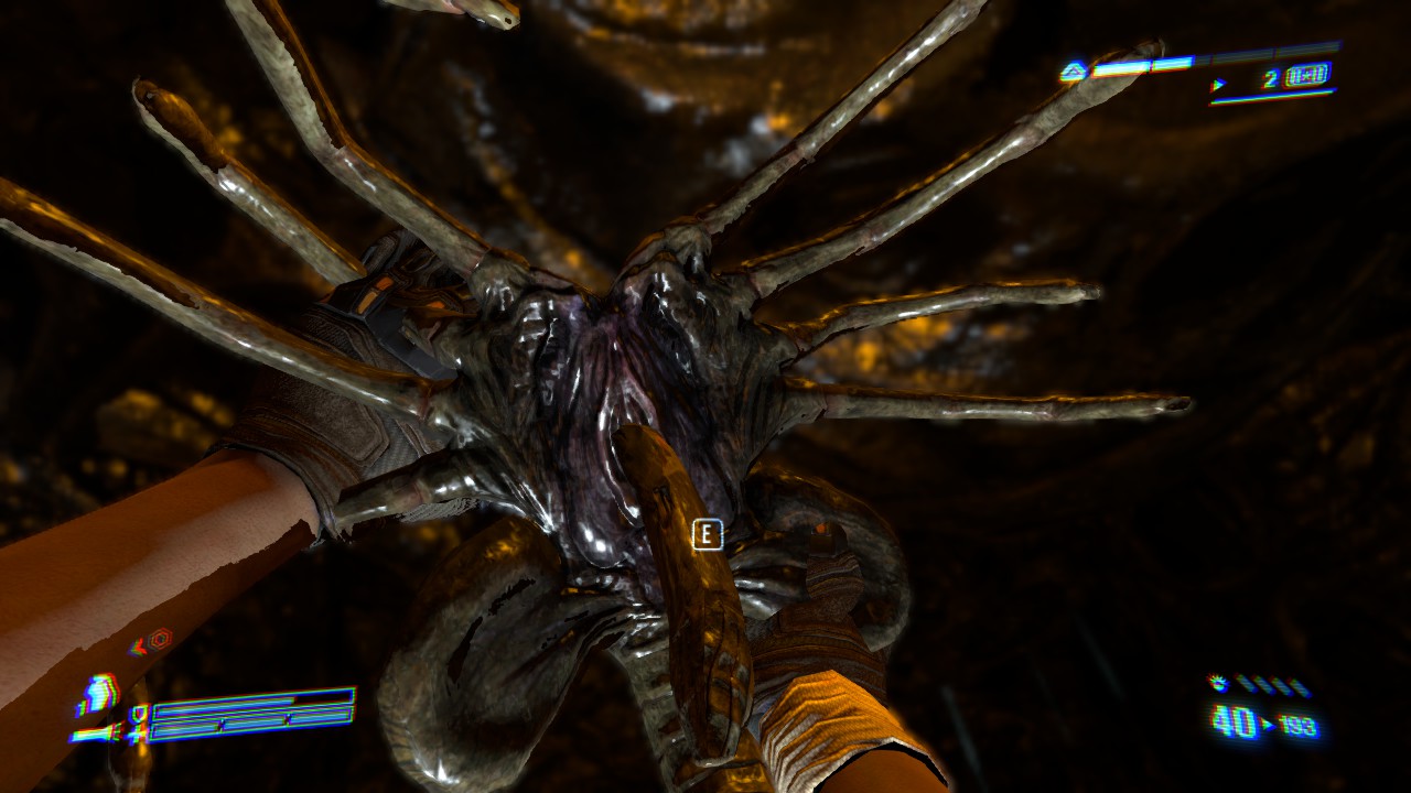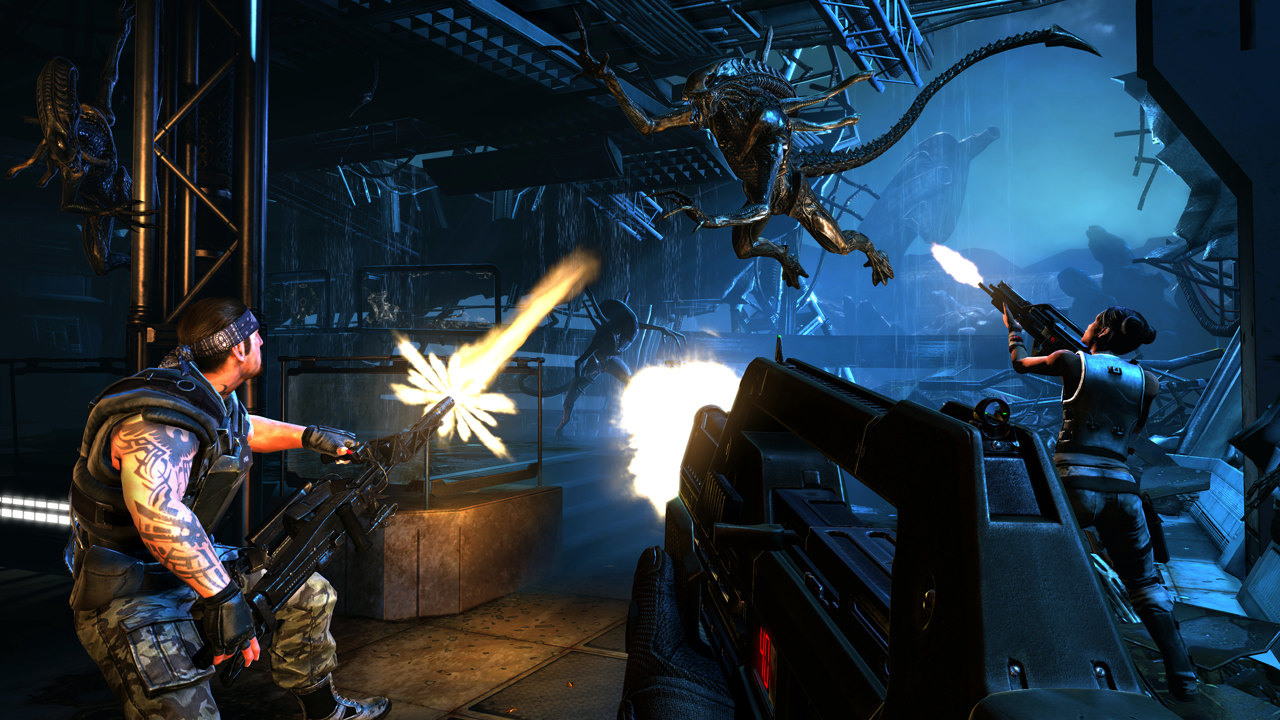 Jediné tedy co musíte udělat je vzít do ruky kulomet, brokovnici či pistol a vystřílet vše co se vám postaví do cesty. Je velmi smutné, že ve hře není žádný pomalý postup. Tiché šourání se tmavými prostory a očekávání Vetřelce za každým rohem. Nic takového. Prostě většinou už dopředu tušíte, že se před vámi některý z hnusáků skrývá a máte zbraň v pohotovosti. Nepřátel není příliš mnoho, najdete tu klasické Vetřelce, poté Facehuggery, kteří se vám snaží přisát na obličej, což vyřešíte otravným quick-time eventem a poté se tu sem tam objeví nějací ti bossové. Jejich likvidace není o ničem. Stačí vzít bouchačku a náboje a ládovat to do nich, co se jich tam vejde.
