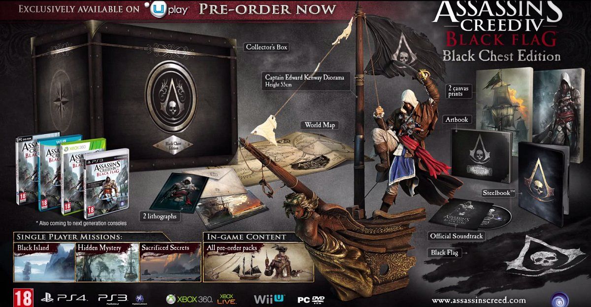 Ubisoft odhalil obsah sběratelských edic Assassin’s Creed IV Black Flag pro EMEA region. Hra Assassin’s Creed IV Black Flag vychází pro Xbox 360, PlayStation 3, PlayStation 4, Wii U a PC.
