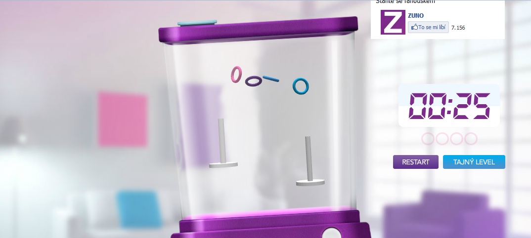 Do vývoje her se dnes pouštějí už i banky. Internetová banka ZUNO v rámci své retrokampaně vyvinula online remake staré hry Kruhy, kterou si mnozí ještě pamatují z dětství. Hraní je to rychlé a nenáročné a na dlouho vás nezabaví. Udrží vás u ní nejspíš jen to, že když chytíte všechny kroužky na kolíky do jedné minuty, můžete vyhrát 750 Kč.