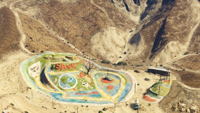 První místo, na které zavítáme, patří spíše k těm neobvyklým. Tábor Hipíků se nachází kousek za městem Sandy Shores. Na místě naleznete mírumilovné zhulené obyvatele, kteří vás rádi přivítají ve svých skromných karavanech. Jejich prostředí může pro někoho působit velice zajímavě, a tak jestli se nechcete pokochat pohledem na tento výtvor, můžete ho klidně využít jako trať pro bikros. Turistickou atrakcí je UFO, které se nad táborem často vyskytuje. FIB se to snaží tutlat, ale zvědavým očím turistů nic neuteče.