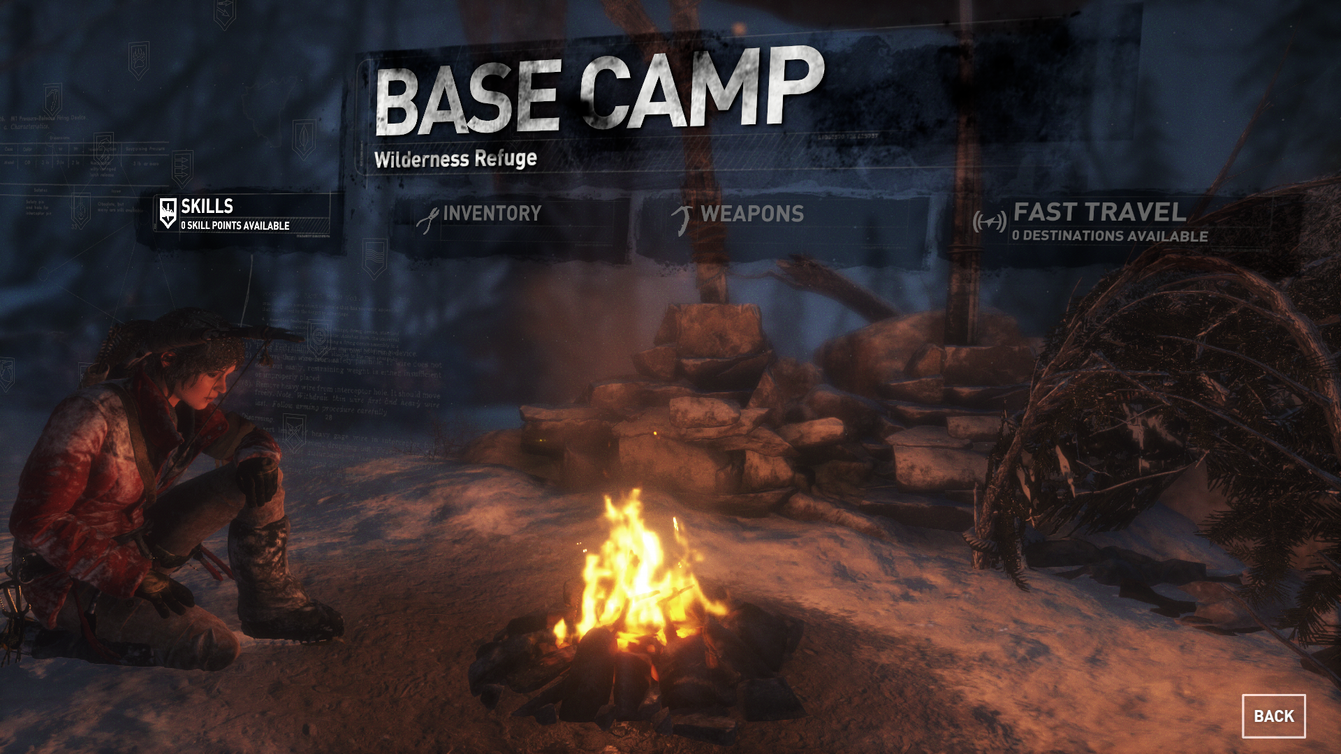 A teď se příběh posouvá zpět na místo, kde Laru smetla lavina. Zde si založíme první ohýnek, tedy místo, kde si budeme moci vylepšovat vybavení a zbraně, a také zlepšovat dovednosti.