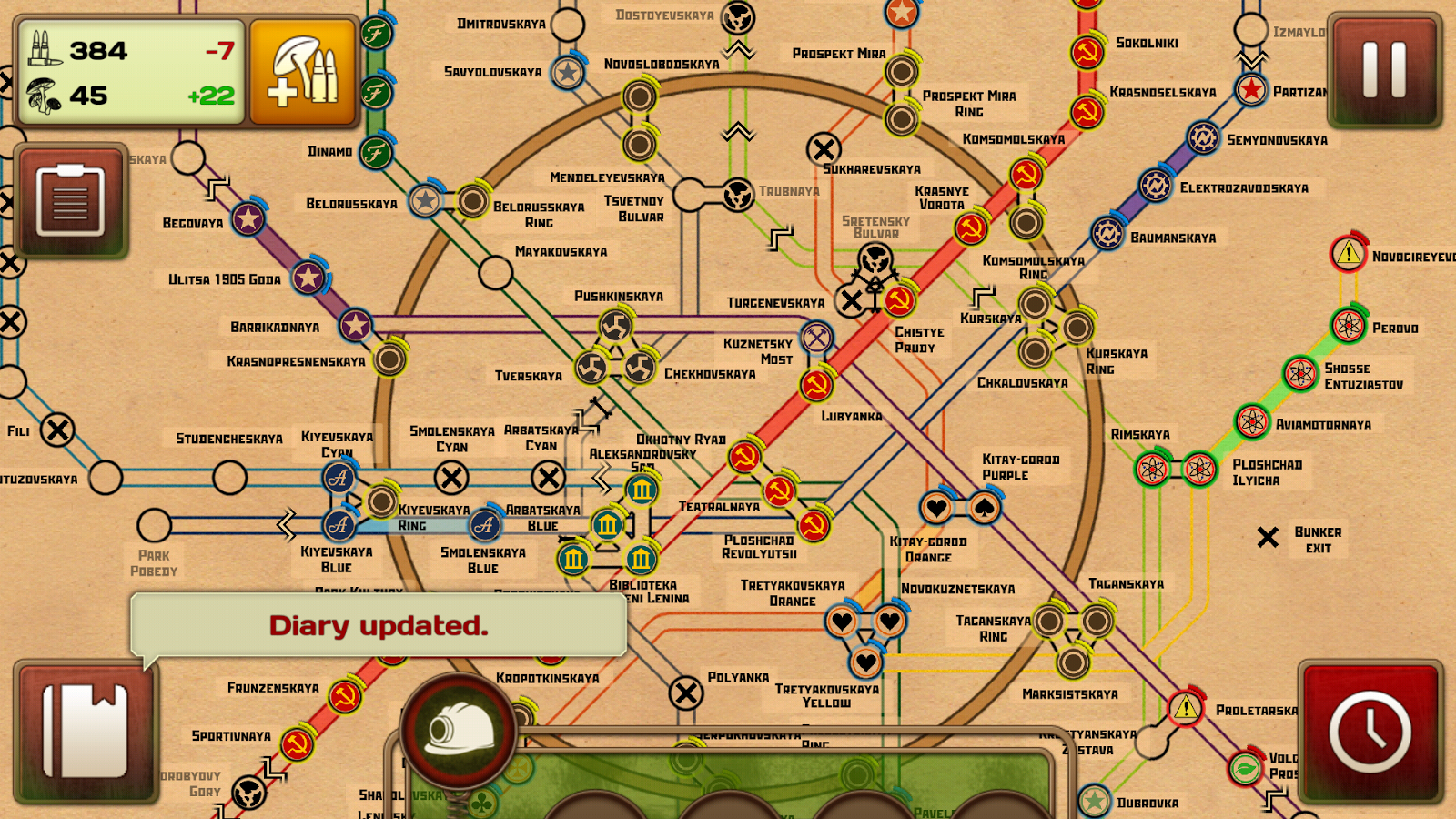 Hra však není jen o urputném boji. Před vámi je mapa moskevského metra a vy se po ní pohybujete. Máte možnost za jediný den urazit vzdálenost pouze jedné stanice. Pak už jde pouze o to, zda ji vybojujete ze spárů nepřátel či vyhubíte mutanty, anebo se jí dokonce pokusíte vyhnout. Na to je systém metra poměrně dostatečný.