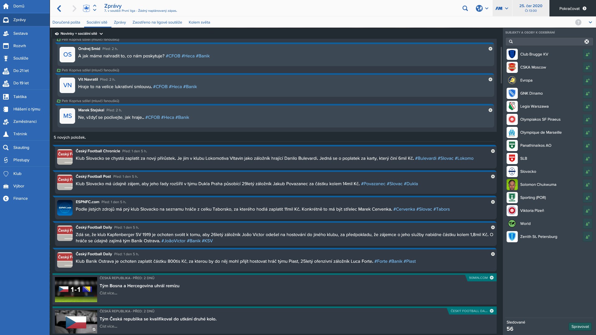 Pohyb ve vaší kanceláři je zase lepší, než kdy dříve. Kdyby takové intuitivní menu měly všechny strategie, odměnili bychom se upřímným aplausem. Položky v levém panelu jsou přehledné, díky nim se proklikáte všude, tady se žádná razantní změna nekoná. Až na sociální sítě, které mapují dění kolem, můžete si libovolně vybrat, jaké informace a o čem budete odebírat. Fanoušci klubu budou hodnotit  jednotlivé kroky, většinou jeden složí poklonu, jiný bude kritizovat. Je to spíše kosmetická změna, která ale posunuje herní zážitek blíže skutečnému dění. Snad je to jen začátek dalšího prvku, který se bude zlepšovat a mít na hru větší vliv v budoucnu.