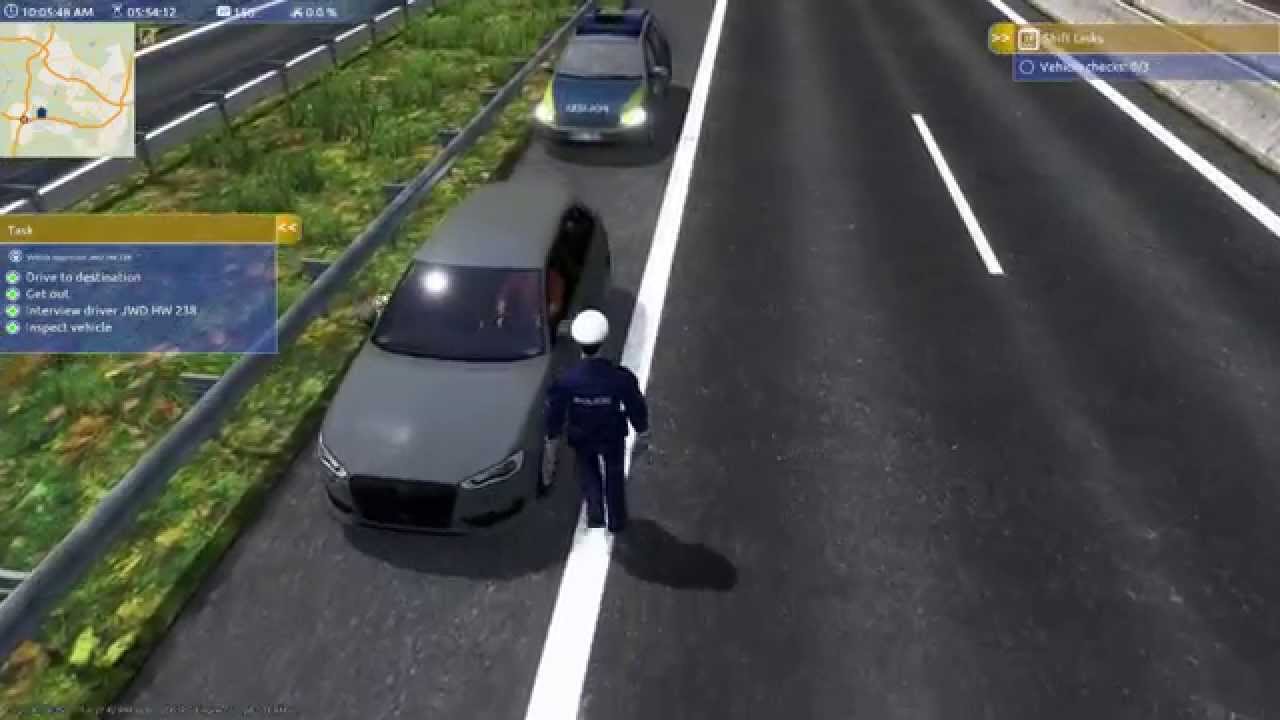 Vše se začne měnit ve chvíli, kdy začne zvyšovat svou rychlost a ne a ne zastavit. Najednou se z nenadání zastaví, jako by narazil do zdi. Pokud jste čekali policejní honičku, musím vás zklamat, tohle tu opravdu nenajdete. Následuje rozhovor, který je snad nejlépe udělaným prvkem hry. Pomocí interakčních tlačítek jsem se mohl s řidičem bavit, přičemž se na obrazovce celý dialog pěkně zobrazoval. Je tu i možnost fouknutí testeru na alkohol, hloubkové kontroly vnitřku vozidla, zkoušky světel nebo kontroly hloubky dezénu pneumatik. Bohužel i tento rozhovor má své mouchy. Stalo se mi, že jsem mylně obvinil řidičku z nedbalé jízdy. Když se řidička ptala, co konkrétně způsobila, tak moje postava neměla co odpovědět, a tak celý rozhovor jel jako smyčka. Jediná možnost, jak z toho ven bylo pouze přes ctrl + alt + F4.