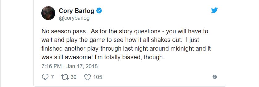 Cory Barlog, ředitel společnosti Sony Santa Monica’s Studio, potvrdil prostřednictvím Twitteru, že hra nebude mít Season Pass.
