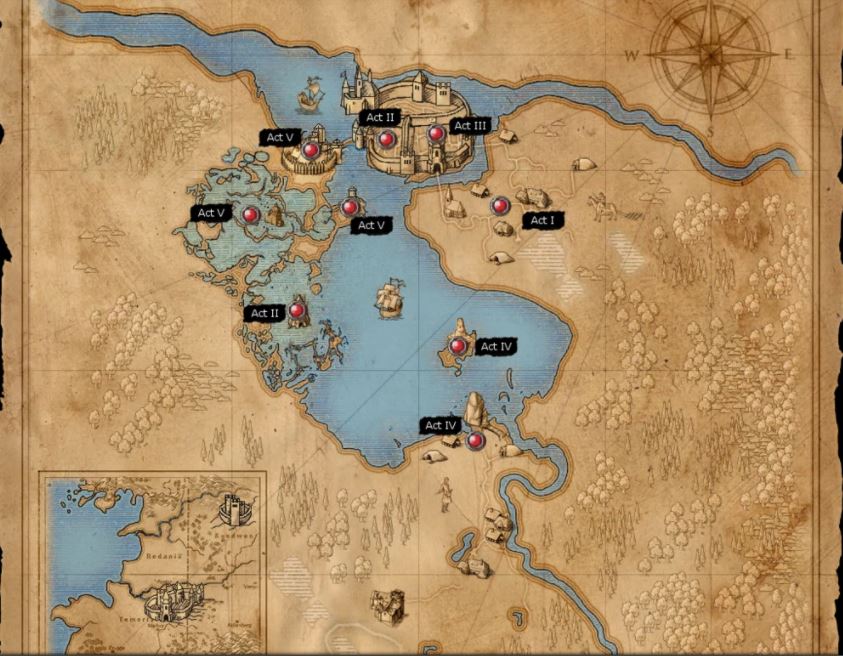 Po prologu na hradě La Valettů se Geralt přesouvá do Flotsamu, městečka ještě v Temerii. Poté si hráč musí vybrat, zda se spojí s Iorvethem nebo Vernonem Rochem. V prvním případě navštíví nejprve Vergen na hranicích Temerie a Vergenu, město trpaslíků s unikátní architekturou, v případě druhém tábor kaedwenské armády. Posledním navštíveným místem je Loc Muinne, starobylé město na úpatí Modrých hor.