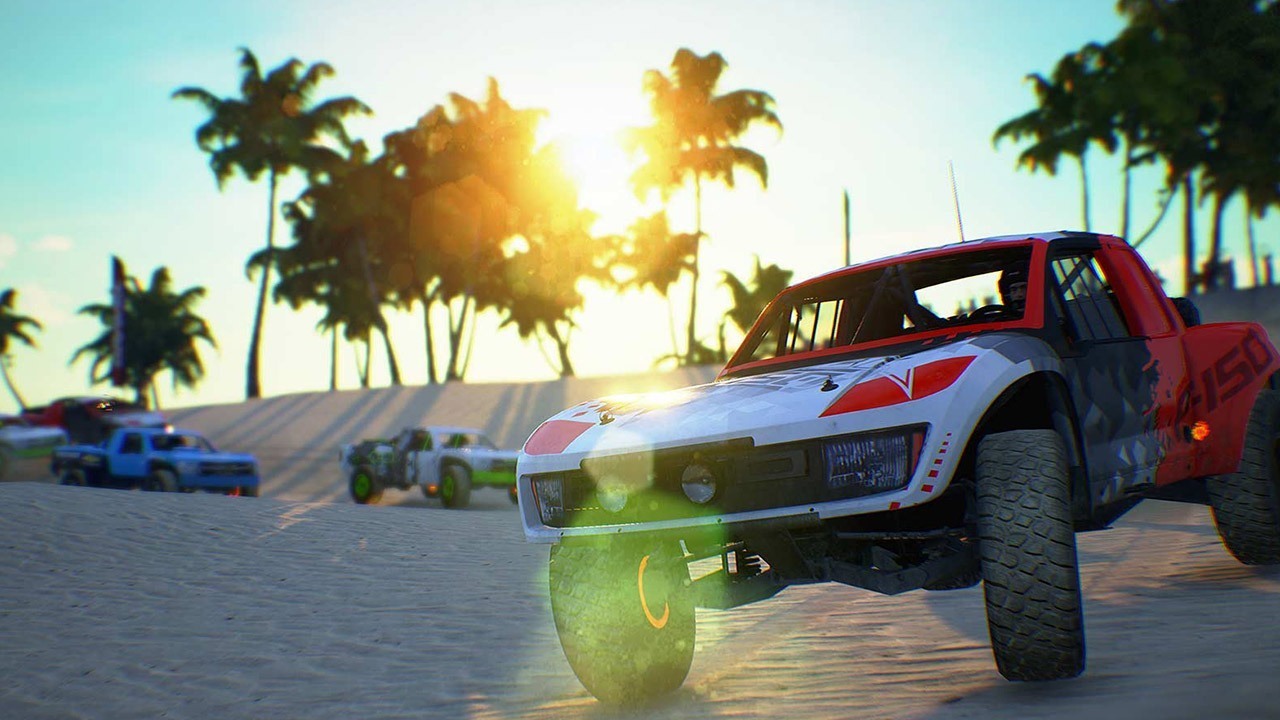 Zmíněný první dojem při uvítacím závodu se týká i grafického kabátku hry. Ta má na PC při prvním spuštění nastavenu „kvalitu“ rozmazání na Ultra, což hru, pravda, rozmazává naprosto dokonale, vypadá to však naprosto otřesně. Co nejdřív tedy vypnout! Uvidíte totiž pak, že ve hře jsou dokonce i nějaké textury. Nějaké. Zázrak se nekoná. Gravel běží na Unreal Engine 4, což je ve správných rukou velmi silný nástroj, jak dokazuje např. Hellblade: Senua’s Sacrifice nebo čerstvě odložená PS4 exluzivita Days Gone. Milestone však takové ruce nenašli, protože jediné, co na hře vypadá jako z roku 2017, jsou sluneční paprsky a jejich odrazy ve vodě a na karoseriích. To totiž umí Unreal 4 i bez toho, aby na něj kdokoliv sáhl. Zbytek hry se kvalitou grafického zpracování vyrovná tak maximálně již tolikrát zmiňovanému DiRTu 3 z roku 2011, přičemž světla aut jsou v Gravelu zpracované naprosto tragicky – externí kulaté reflektory na náraznících jsou čistě bílé plochy, a o parabolách továrních předních lamp ani nemluvě. Samotné modely aut jsou, stejně jako vlastně celá hra, o zhruba jednu generaci konzolí pozadu, a porovnání např. s Forzou nebo Project Cars ani nemá smysl. Proto také běží na postarší i5 3,2 GHz, GTX 1060 6GB a 16 GB RAM na kompletní Ultra nastavení (až na ten bloom, samozřejmě) bez jediného záškubu.