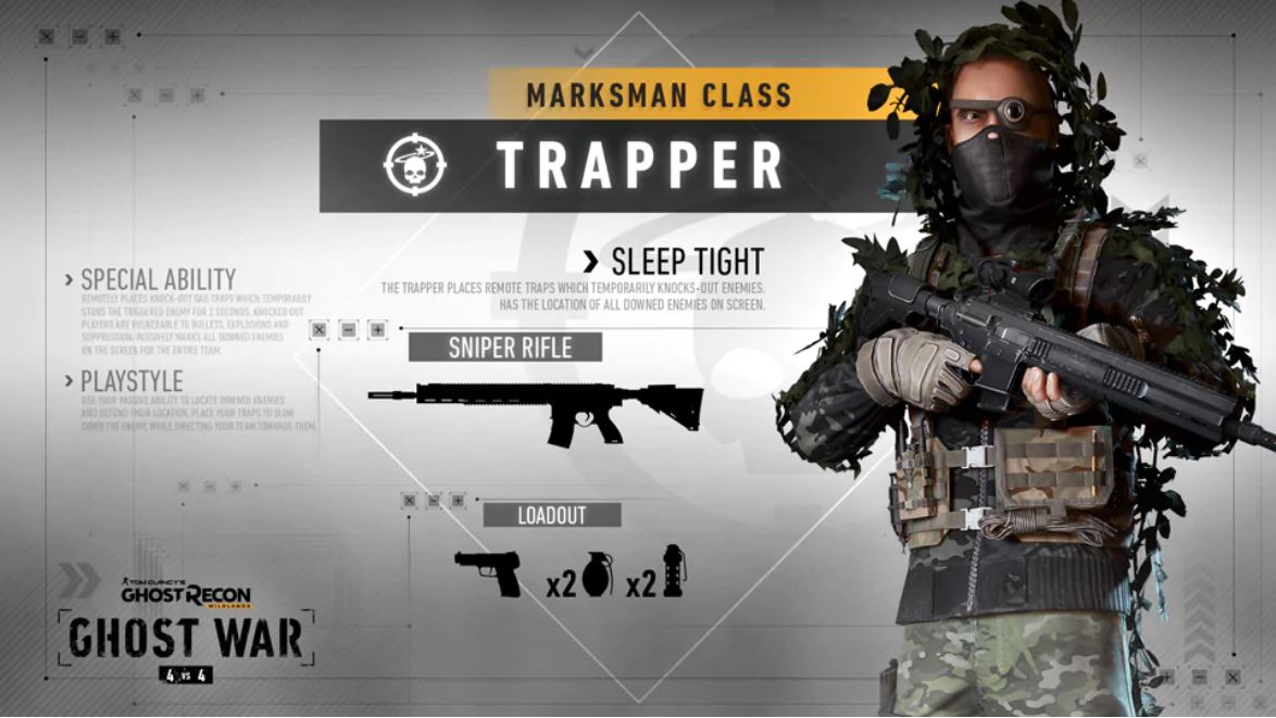 Trapper je Marksman, který má jak pasivní schopnost, tak i aktivní. Pasivní schopnost umožňuje trvale označit nepřátele pro všechny spoluhráče. Aktivní schopnost umožňuje odpálit vyřazené plynové lapače z dálky, které poškodí a ohromí nepřátele.