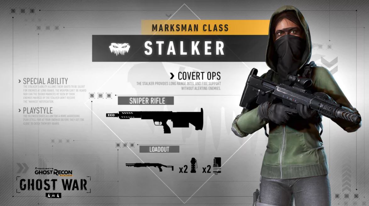 Stalker je třída, která má dvě pasivní schopnosti. Tyto schopnosti umožňují Stalkerovi tiše sledovat svou kořist z dlouhého dosahu, než si ji tiše vyvedne zbytek týmu.