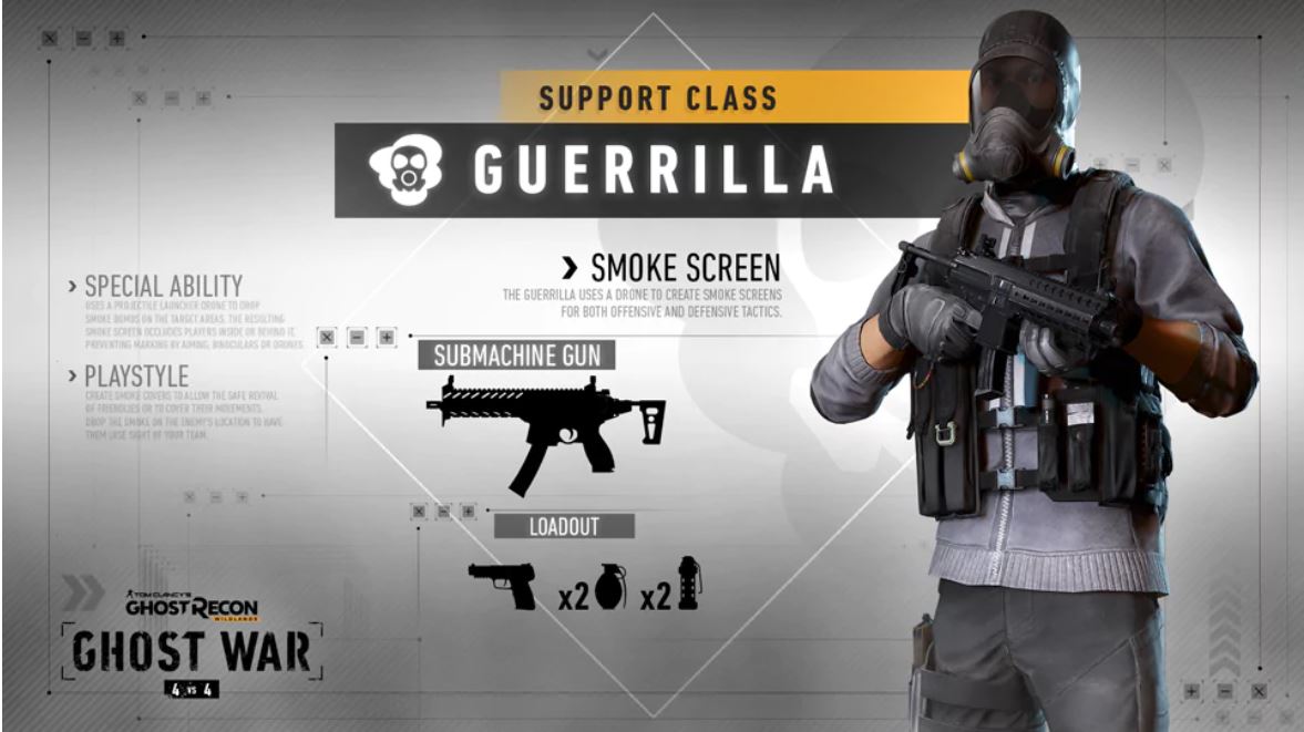 Guerrilla je třída podpory s dronem, který může střílet kouřové granáty. Všichni hráči uvnitř kouřového poloměru jsou uzavřeni, což znamená, že se stanou neoznačenými, pokud jsou označeni, zaměřovače nebo dalekohledy je nemohou označit. Kouř může mít mnoho taktických využití, od vytváření bezpečného krytu, až po oživení sestřelených spoluhráčů a dočasné oslepnutí nepřátelského ostřelovače.