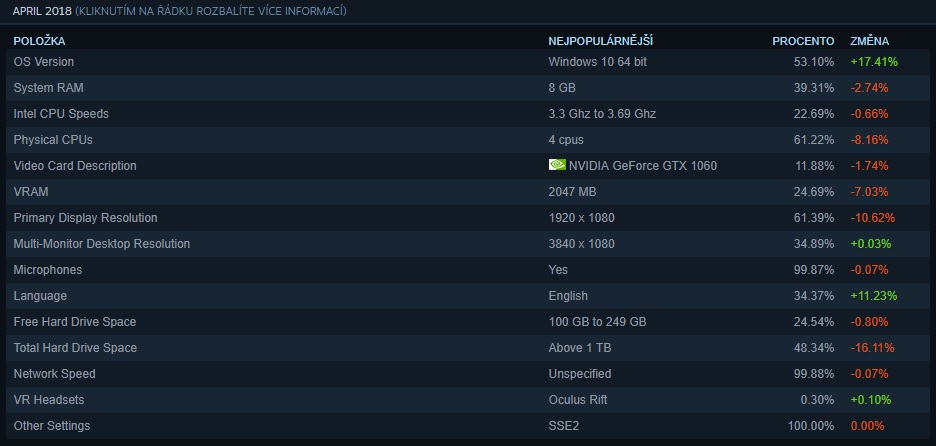 Pokud vás zajímá více detailů, můžete se podívat na statistiky na Steamu pomocí tohoto odkazu, nebo se můžete podívat na obrázky v galerii níže.
