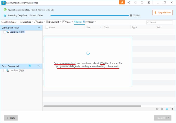 Poté, co kliknete na tlačítko Scan, začne několikaminutový proces, během kterého se najdou veškeré soubory a data, které se dají ze zvoleného disku obnovit.