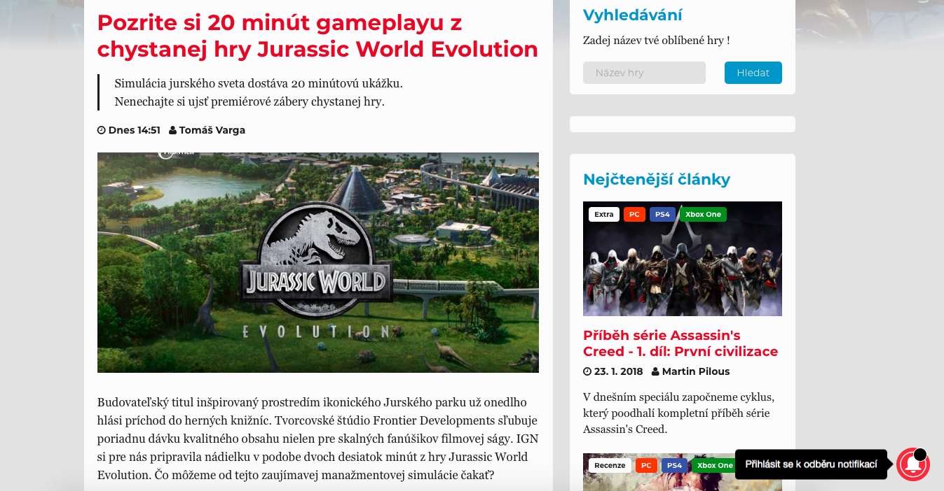 Každý deň sa vám snažíme priniesť tie najhorúcejšie vychytávky zo sveta videogamingu. Ak nechcete zmeškať najnovšie informácie týkajúce sa prichádzajúcich titulov, recenzií alebo hardvéru, prinášame vám funkciu notifikácií. Notifikácie vo forme pripomienok o nových príspevkoch si môžte aktivovať hneď pri návšteve našej stránky.