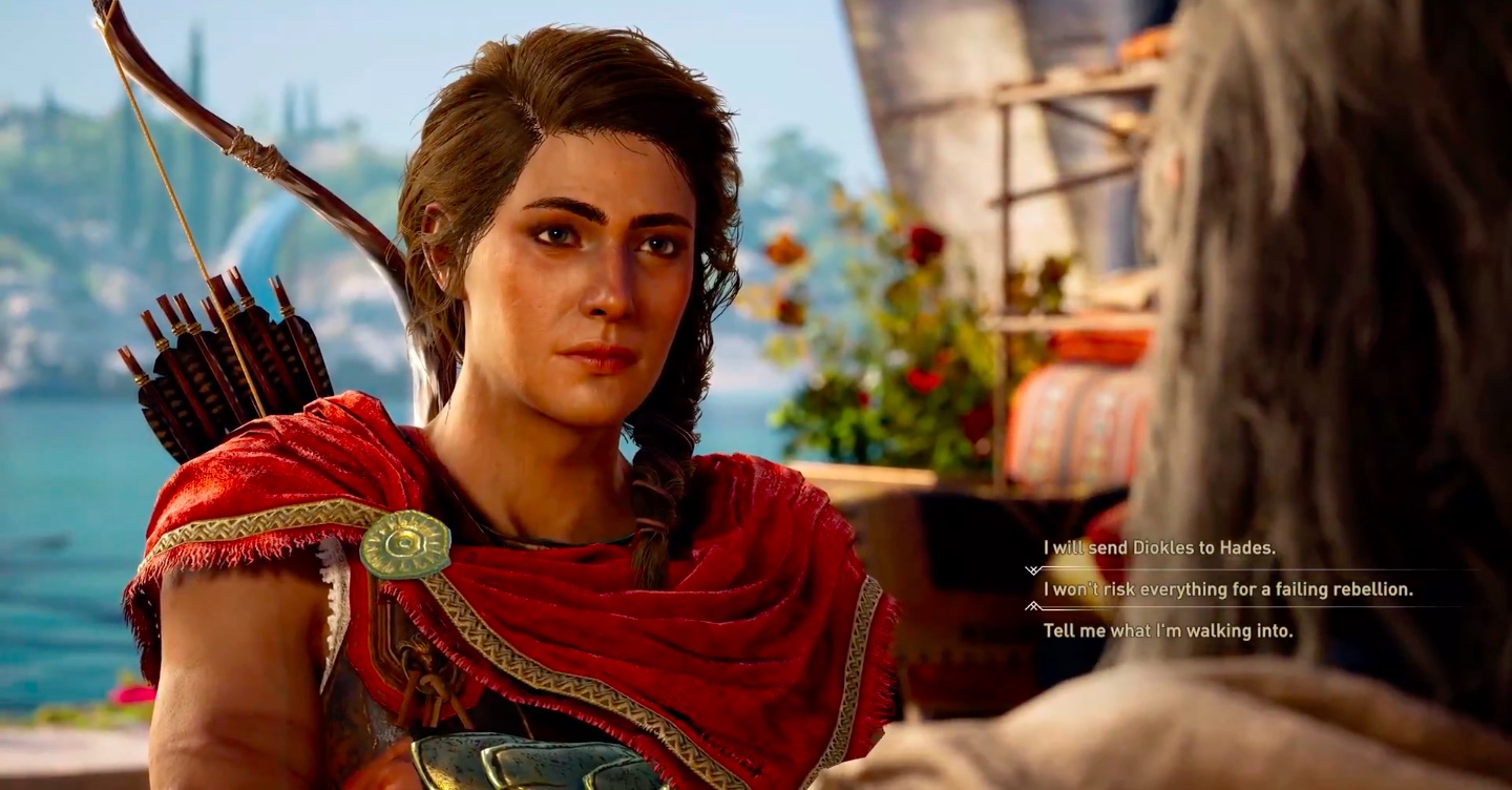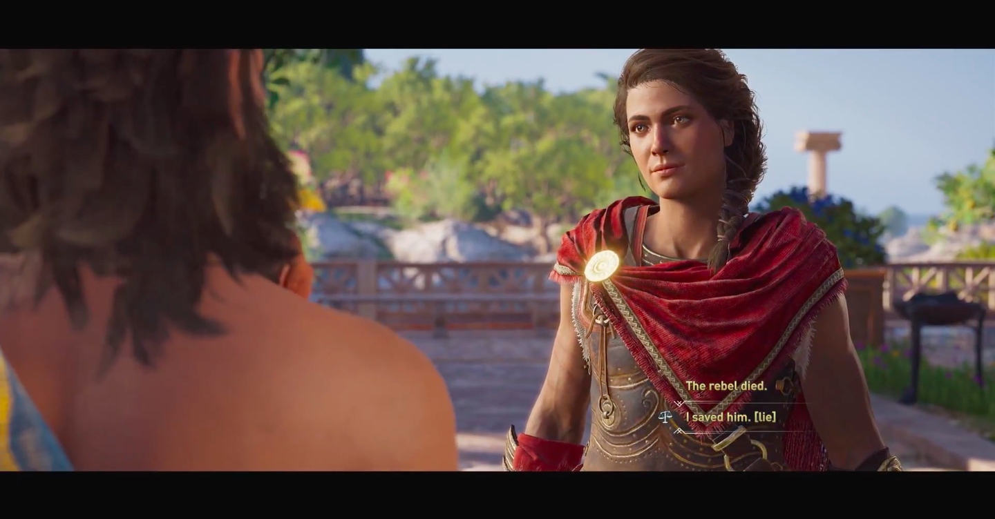 Velké změny se dočkalo celkové pojetí vyprávění příběhu. Zatímco jsme totiž byli doposud zvyklí na “jednosměrné” dialogy bez možnosti výběru, AC Odyssey tuto věc otočí o 180 stupňů. Do hry totiž přibudou právě možnosti volby odpovědí, podle kterých se bude děj ve hře také dále odvíjet. Záleží tedy jen na vás, zda budete chtít postupovat spíše klidně a rozvážně, nebo se necháte unést emocemi, což většinou skončí dřívějším tasením meče.