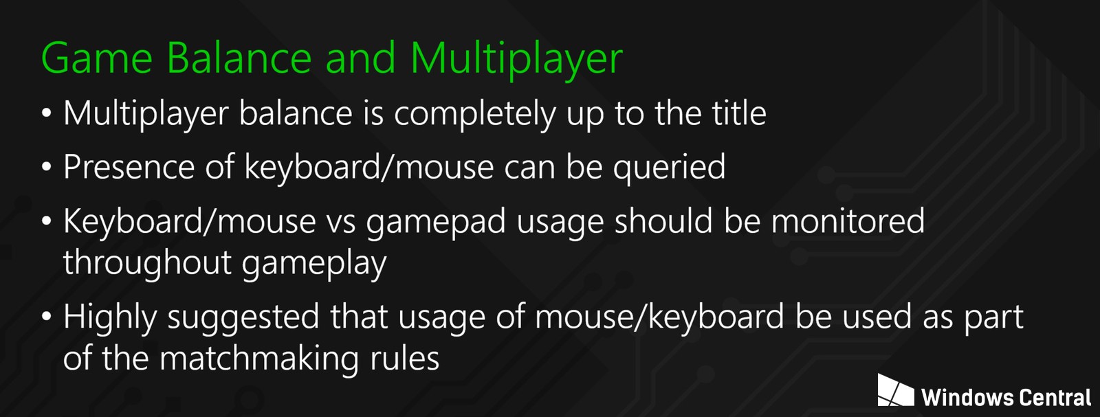 Vývojári pracujúci na podpore dodatočného hardvéru pre Xbox One boli oboznámení s krokmi, ako službu zlepšiť a priniesť hráčom čo najlepší zážitok z hry. V inštrukciách sa nachádzajú body, ktoré hovoria o plnej kompatibilite v rámci používania klávesnic a myší, s čím sa spája monitorovanie hráčov a detekovanie štýlu hry. To by malo viesť k následnému vylepšeniu herného rozhrania a aj samotného ovládania. Vývojári budú mať tiež možnosť skúmať hráčmi používaný hardvér a zisťovať aké typy klávesníc a myší sú najviac používané.