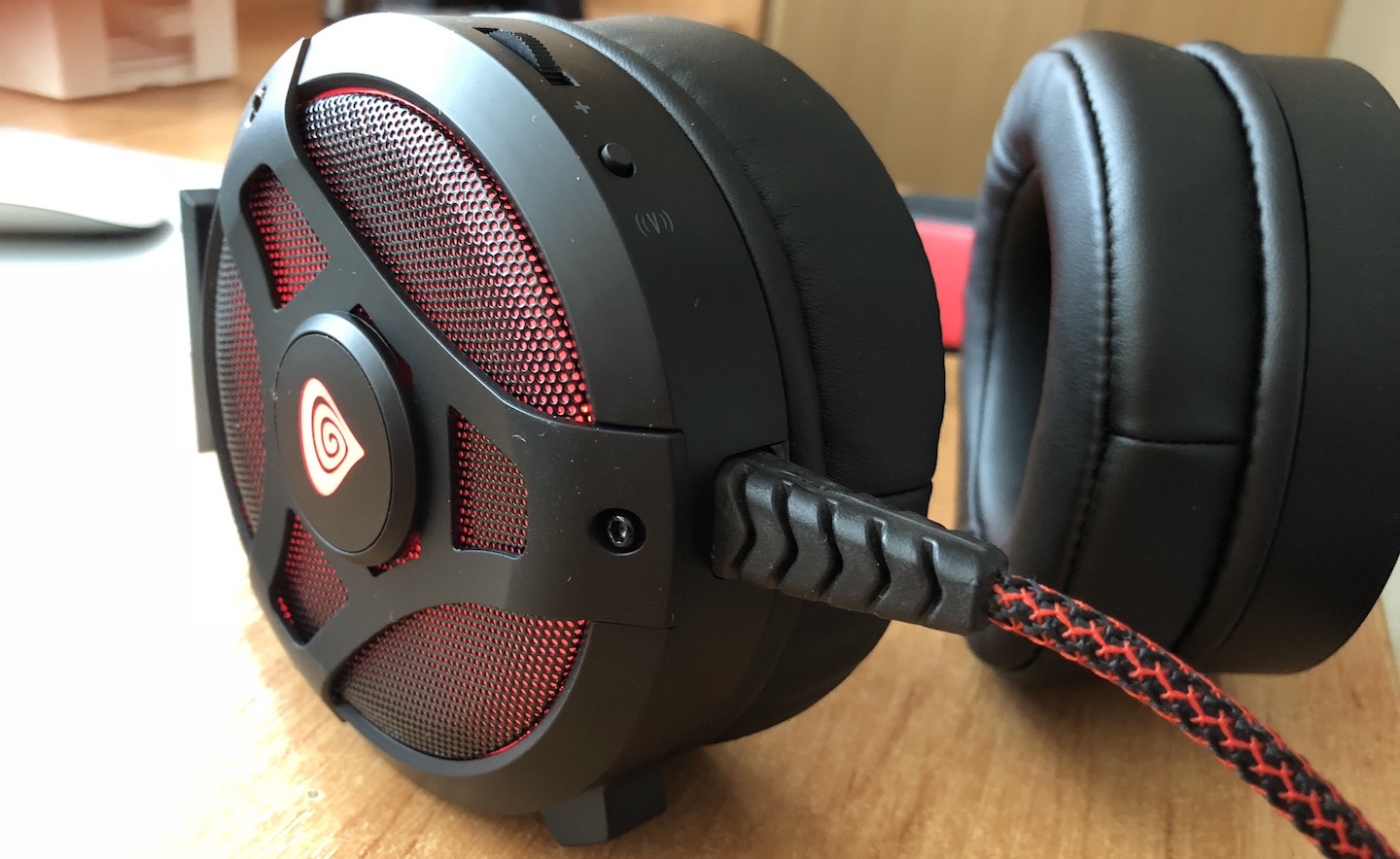 Headset vyzerá na prvý pohľad naozaj zaujímavo, no to hlavné prichádza samozrejme až po jeho pripojení. Po zapojení sa rozjasní LED podsvietenie červenej farby, ktoré je pre Genesis viacmenej typické. Podfarbenie zvýrazňuje logo firmy a takisto kovovú sieťku, ktorá sa tiahne z vonkajšej strany náušného priestoru. Pre podsvietenie nie je nutné zapájať všetky koncovky kábla, nakoľko ho ovplyvňuje iba USB konektor. Okrem zapojenia jacku do počítača alebo notebooku si tak môžte so slúchadlami prepojiť aj telefón či tablet, no vzhľadom na krátke rozostupy medzi konektormi je táto možnosť dosť nepraktická.