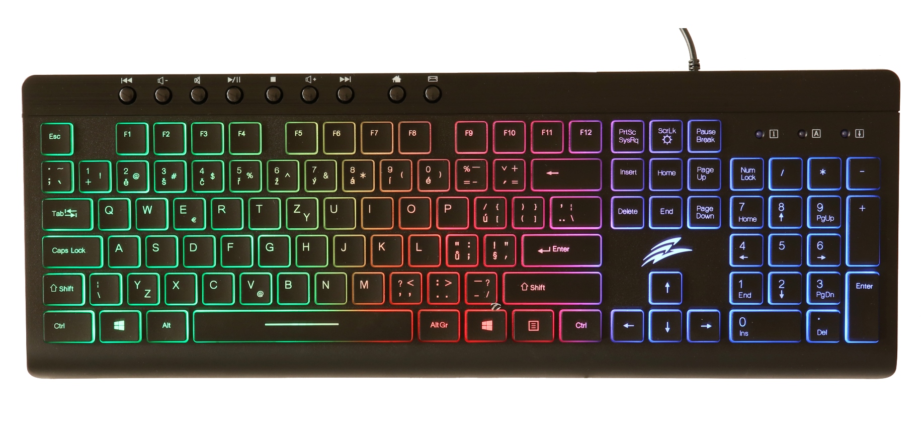 EVOLVEO GK680 zaujme atraktivním duhovým LED podsvícením, které se ovládá pomocí klávesy Scroll-Lock. Tato klávesnice je svými parametry a cenou určena všem, kdo vstupují do světa počítačových her a hledají atraktivní produkty za dostupnou cenu.