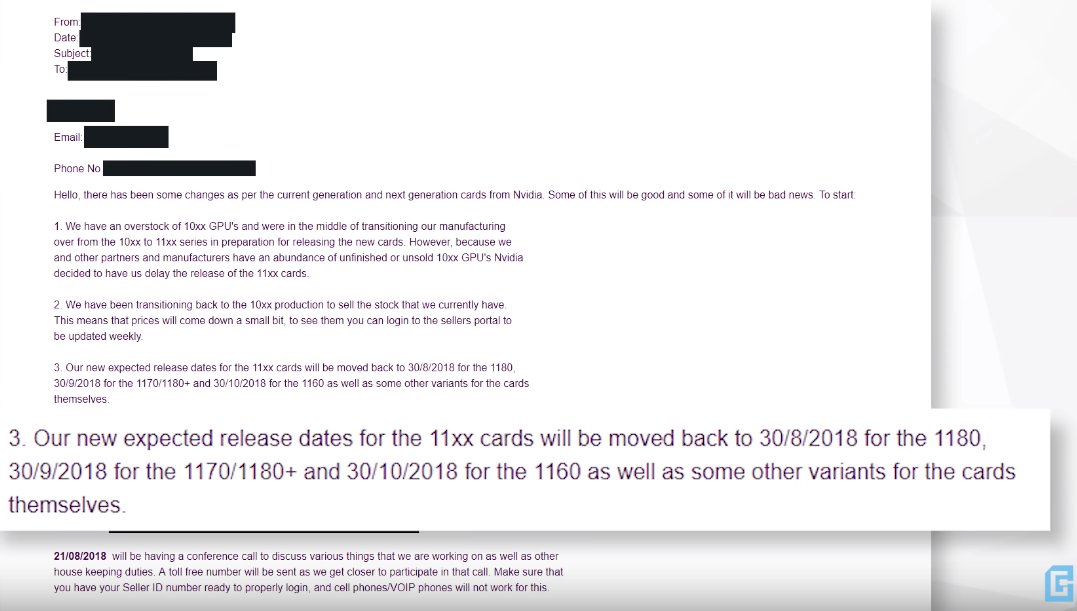 Všechny tyto informace pochází od YouTubera Gamer Meld, který tyto informace obdržel od jednoho z partnerů Nvidie. V e-mailu si můžeme všimnout dat, které poukazují na to, kdy budou vydány čtyři nové grafické karty: