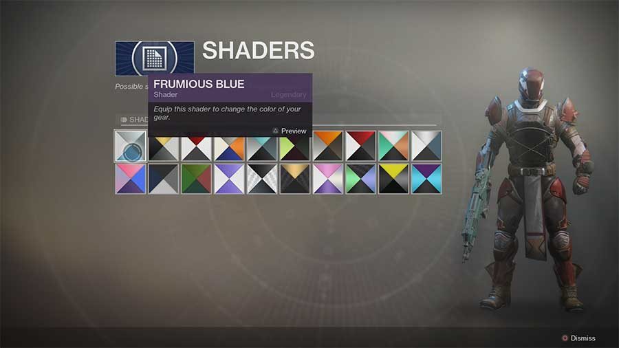 Shadery v hre fungujú na báze „consumables“, preto je možné použiť špecifickú farbu iba na jednu časť vašej výzbroje. Keď sa však farby nakopia a vy nemáte miesto v inventári, prichádza azda najnepríjemnejšia časť. Pri odstraňovaní celého zoznamu shaderov sa môžete pekne zapotiť, pričom celý proces môže trvať aj niekoľko desiatok minút.
