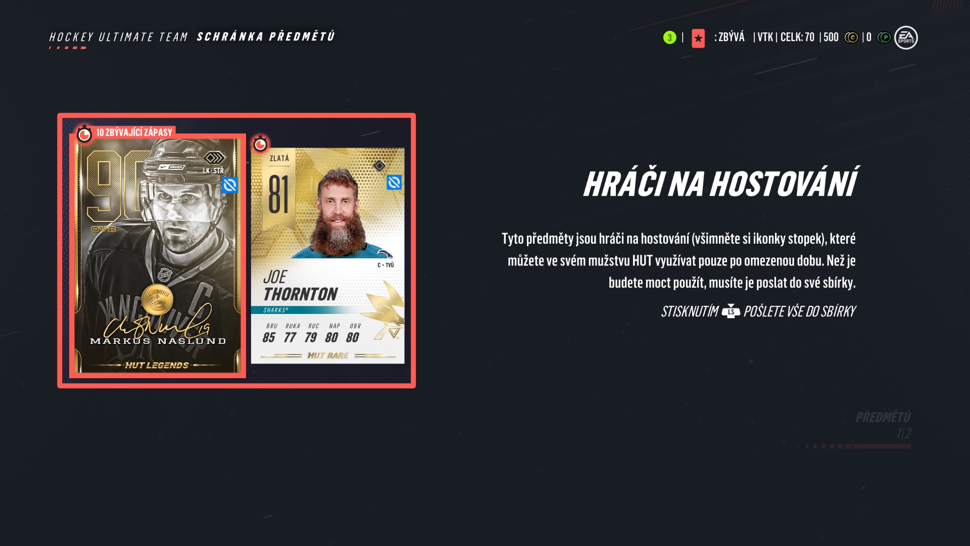Hockey Ultimate Team predstavuje jeden z najzábavnejších módov NHL od Electronic Arts už po niekoľko rokov. V HUT je možné zabávať sa doslova hodiny, či už sa jedná o plnenie rôznych výziev, kompetetívne hranie s inými hokejovými nadšencami alebo jednoduchý postup v singleplayerových rebríčkoch. Minulý ročník priniesol veľmi vítané prvky, vďaka ktorým bolo možné si rýchlejšie zaobstarať väčší obnos hernej meny, za ktorú sme si následne mohli nakúpiť našich obľúbených hráčov, logá, dresy alebo štadióny. Tentokrát ale ušetríme ešte viac námahy a ťažko zarobených mincí, nakoľko nás odmení samotný postup v hre. HUT teraz obsahuje výzvy, za ktoré dostanete nielen finančné odmeny, (samozrejme sa jedná o virtuálne peniaze) ale aj hráčov na hosťovanie. Tých získate na určitý počet zápasov, počas ktorých ich môžete povolať do akcie. Takmer od začiatku sa jedná o hráčov 85+, ktorí vám výrazne dopomôžu k lepšej tímovej synergii a dosiahnutým výsledkom. Ak ste fanúšikom tohoto režimu tak mi určite dáte za pravdu, že budovanie poriadneho tímu dá celkom zabrať nie len virtuálnej peňaženke, ale aj voľnému času. S funkciou „Hráči na hosťovanie“ bude postup v singleplayerových ale aj v online ligách oveľa jednoduchší ako kedy predtým.