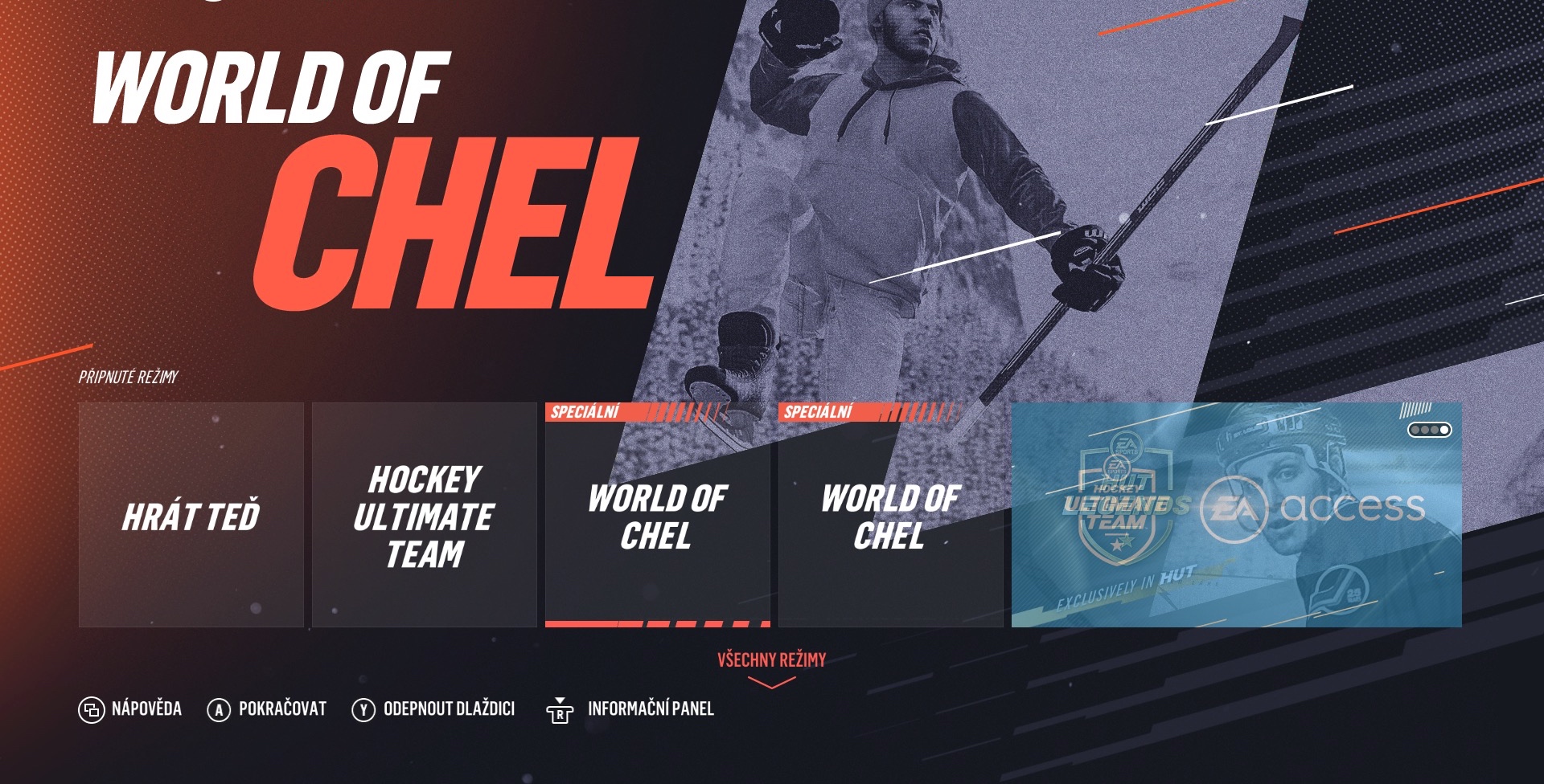 World of Chel predstavuje nový herný mód, ktorý sa pridáva k ikonickým režimom ako sú Be a Pro, Hockey Ultimate Team alebo minuloročný prídavok v podobe NHL Threes. Tento prvok toho prináša o niečo viac. Zhostíte sa úlohy ako inak – hokejistu, ktorý sa snaží presadiť od najzákladnejších amatérskych líg až po vrcholovú súťaž, kde je možné si zahrať s profesionálnymi hráčmi, ale aj s historickými legendami ľadového hokeja. Svoju postavu vylepšujete ako známym bodovacím systémom, tak aj po vizuálnej stránke pridávaním oblečenia alebo rôznych doplnkov. Tie sa vám postupne odomykajú z „EA Sports tašiek“, ktoré získavate za plnenie úloh a samozrejme za vyhrávanie zápasov. Svojmu hernému alter-egu môžete okrem iného vybrať aj gólovú oslavu, hlášku alebo charakteristické pohyby.