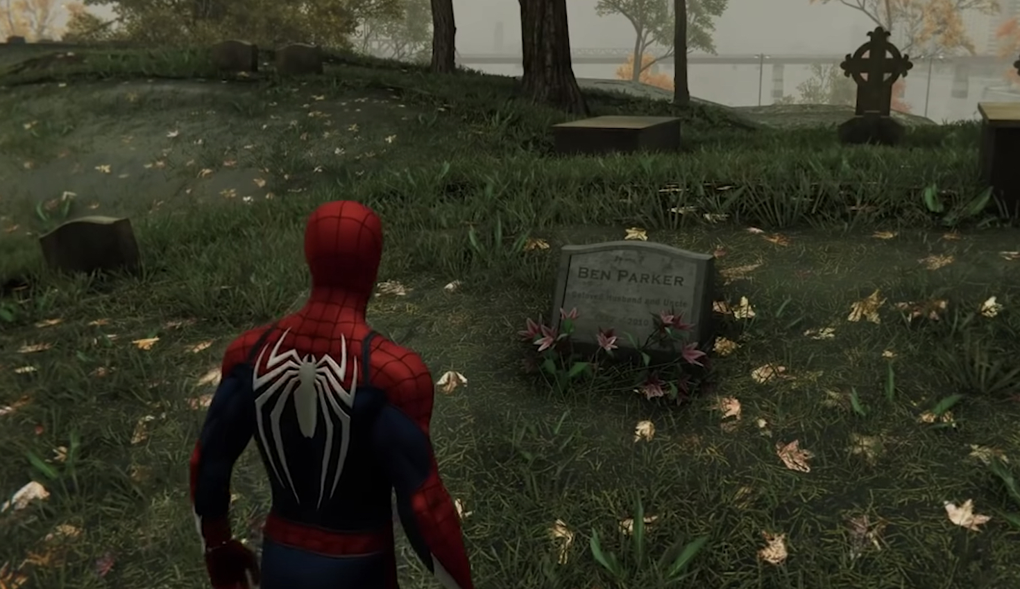 Smrť Bena Parkera, alebo ako ho poznáme my – strýka Bena, predstavuje jeden z najemotínejších a najkľúčovejších momentov histórie Spider-Mana. V hre sa však so spracovaním tohoto smutného incidentu nestretneme, nakoľko je sled udalostí zasadený až 8 rokov po jeho smrti. Ak sa ale nejaká pamiatka má nachádzať v tejto hre, bez pochyby to musí byť Benov náhrobok.