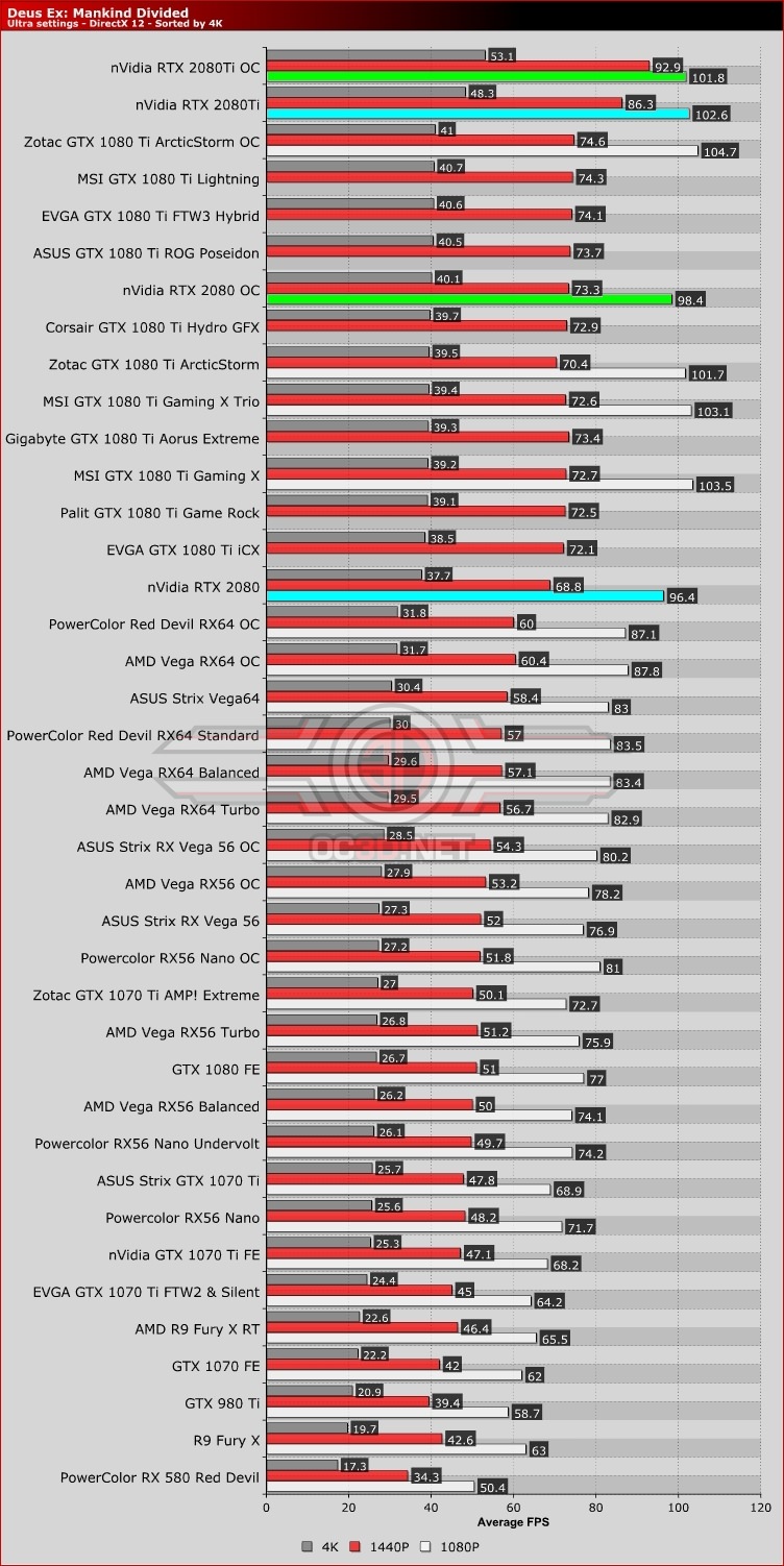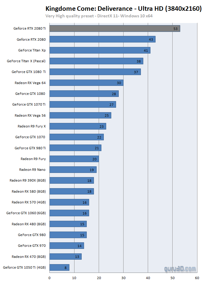 Mezi další hru, se kterou si RTX 2080Ti na 4K/60FPS neporadila, je Kingdom Come: Deliverance. Zde se 4K/60FPS na Ultra nastavení také nekoná. Další do seznamu patří například Deus Ex: Mankind Divided, Monster Hunter World, Hellblade: Senua’s Sacrifice, a také Final Fantasy XV (s aktivní funkcí DLSS). Výsledky benchmarků si můžete prohlédnout níže v galerii.