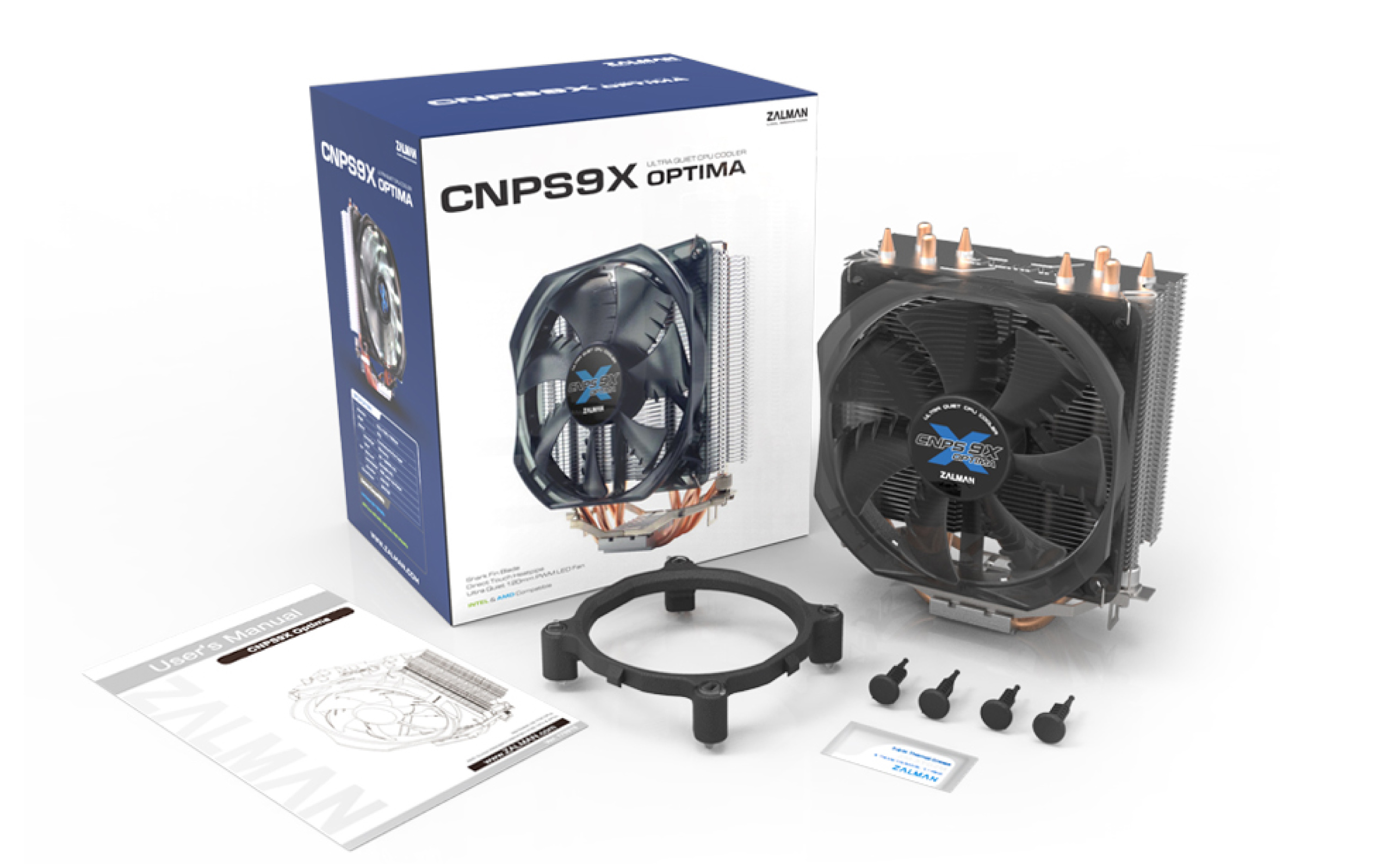 Chladič Zalman CNPS9x Optima se snadno instaluje, je kompatibilní s většinou soketů Intel i AMD a dodává se s teplovodivou pastou ZM-STG2M pro zvýšení chladicího účinku.