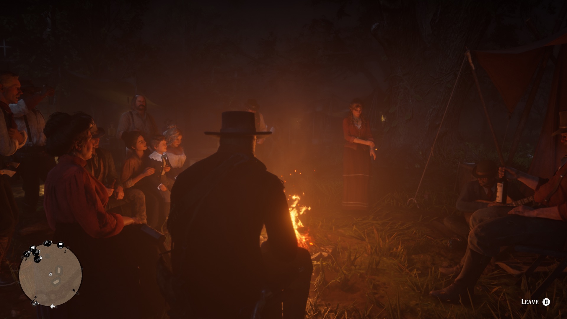 Váš vagón, ktorý je súčasťou kempu vám poslúži ako miesto na odpočinok a dočerpanie síl. Jednou z vítaných možností, ktorú môžete v kempe využiť je rýchle cestovanie, ktoré si však budete môcť odomknúť až v neskoršej fáze hry. nemajte však strach. Navdzory obrovskej veľkosti mapy je takmer každá lokalita pomerne dostupná a pri ceste z jedného miesta na druhé sa vám naviac naskytne oveľa viac možností, ako pri rýchlom cestovaní. Kemp slúži ako domov pre všetky postavy, s ktorými môžete hrať rôzne hry alebo s nimi jednoducho prehodiť pár slov. Pri rozprávaní sa s ostatnými členmi gangu máte výbornú možnosť dozvedieť sa nové informácie alebo odomknúť špeciálne výzvy, ktoré by ste inak získali len veľmi ťažko.