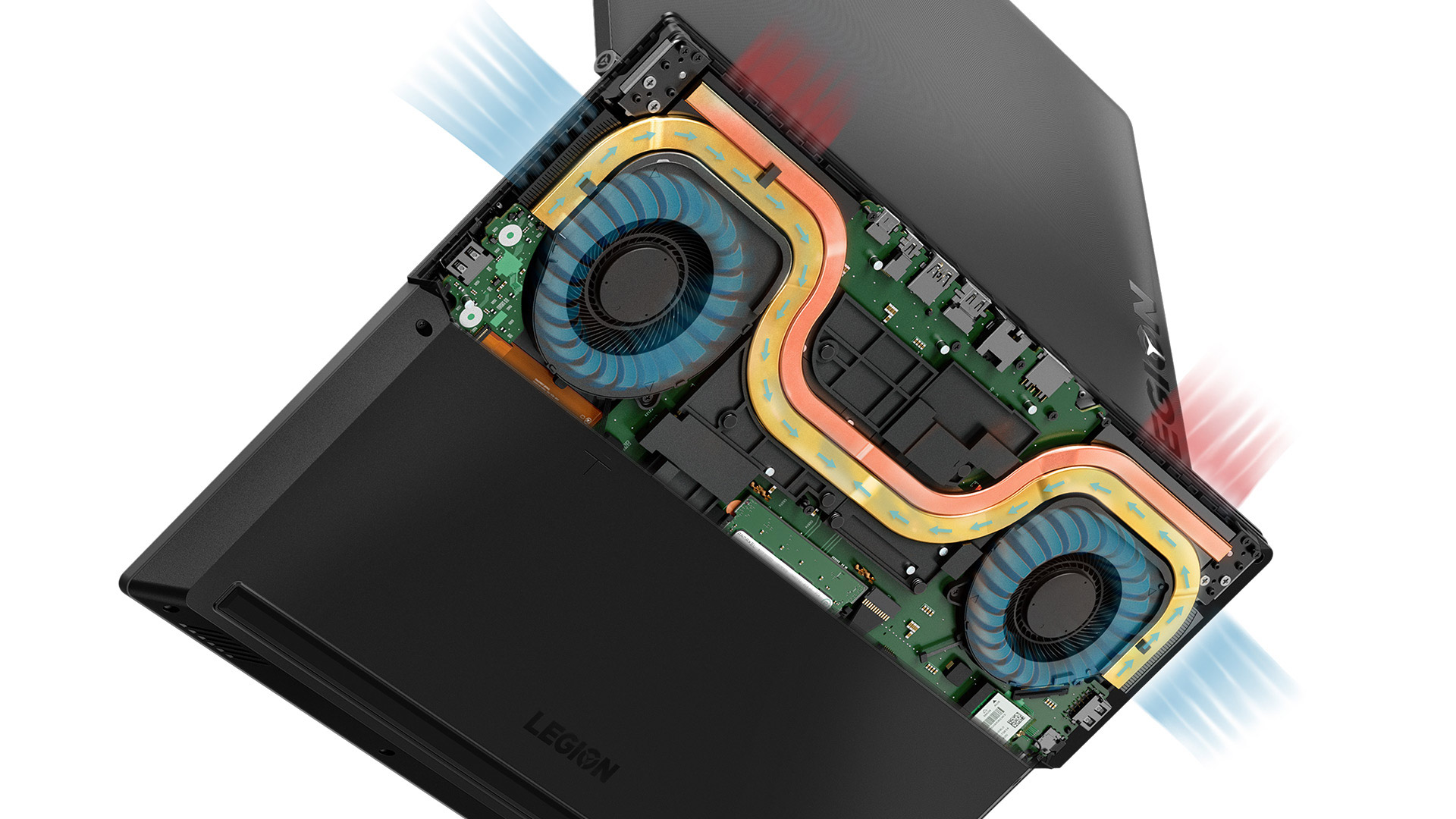 Chlazení je nepochybně alfou a omegou herních zařízení a v případě notebooků to platí dvojnásob. Lenovo vyvinulo systém s odděleným odváděním tepla z grafické karty a procesoru. Dva chladící ventilátory se starají o efektivní air-flow napříč tělem notebooku. Výrobce slibuje také výrazné snížení hluku díky 70 samostatným lopatkám ventilátorů.