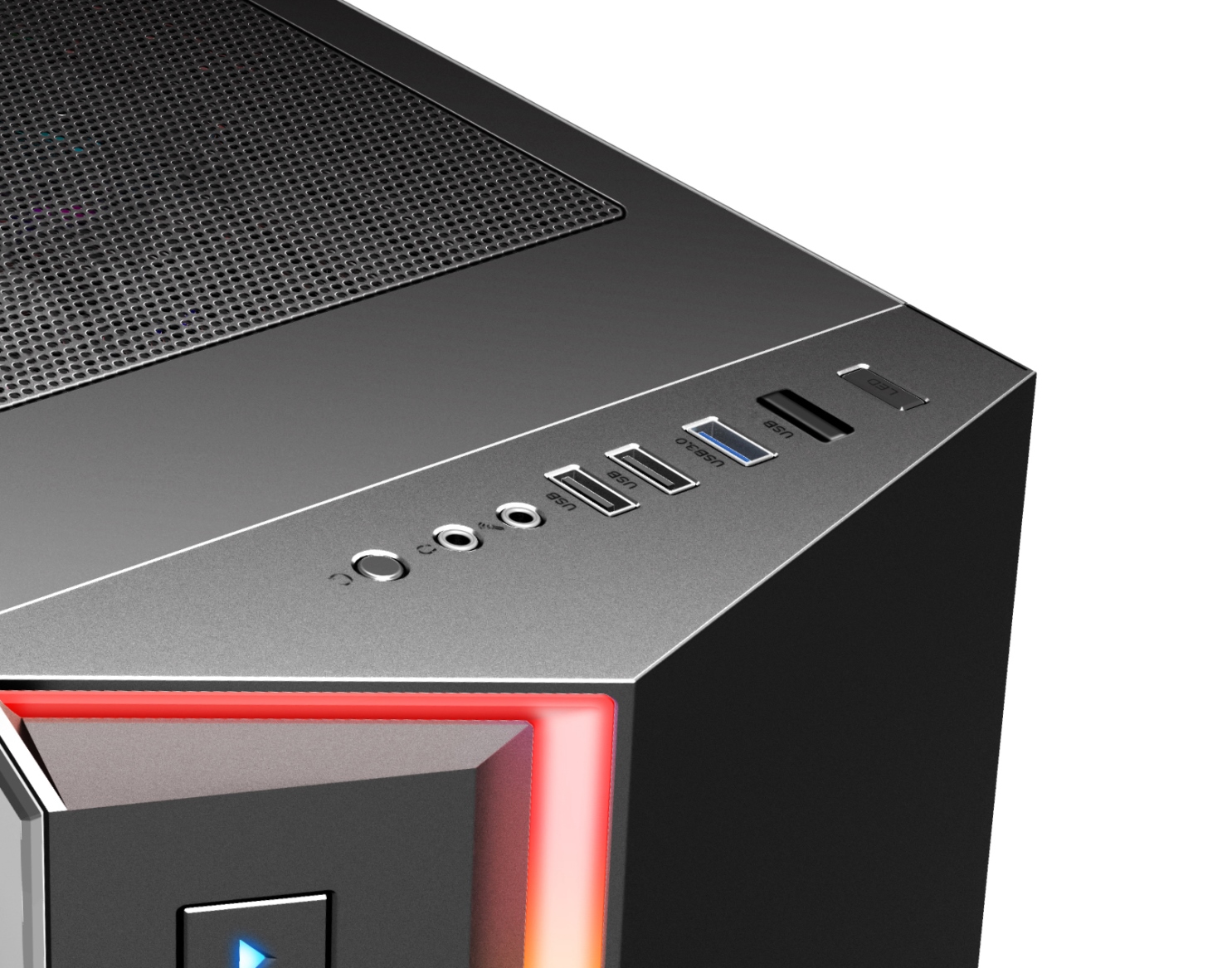 - Přední I/O Porty a ovládání: 2 ×USB 2.0, 1 × USB 3.0, HD Audio