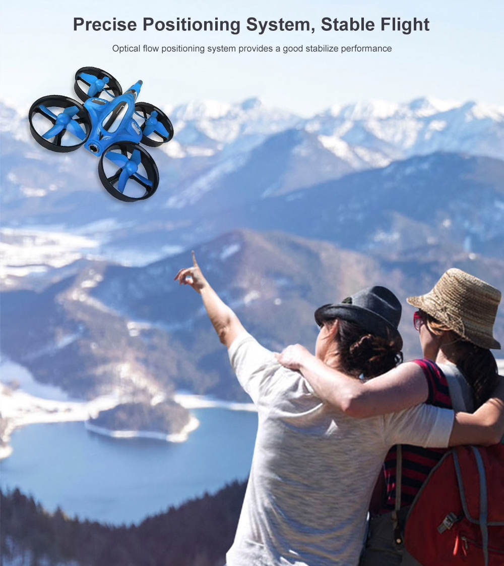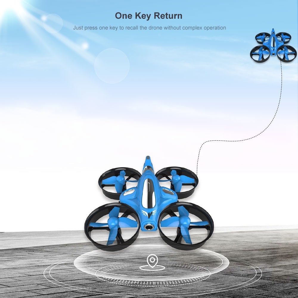 Dron ponúka tri módy pre rôzne letové rýchlosti, ktoré je možné nastaviť a prispôsobiť vzhľadom k vonkajším podmienkam. Vítanou funkciou je aj možnosť okamžitého návratu prostredníctvom tlačidla „Safe Return“. To zabezpečí návrat kvadrokoptéry na pôvodné miesto vzletu. Dron je určený hlavne pre letcom začiatočníkov, no určite ho uvíta každá kategória záujemcov. Kontrola pomocou ovládača dosahuje konektivitu až do diaľky 50m. Vzhľadom na malé telo, extra ľahkú konštrukciu a kapacitu batérie (3.7V 150mAh) vám dron vystačí na niečo okolo 5 minút letu. Pre viac informácií a kompletnú špecifikáciu navštívte nižšie uvedený odkaz.