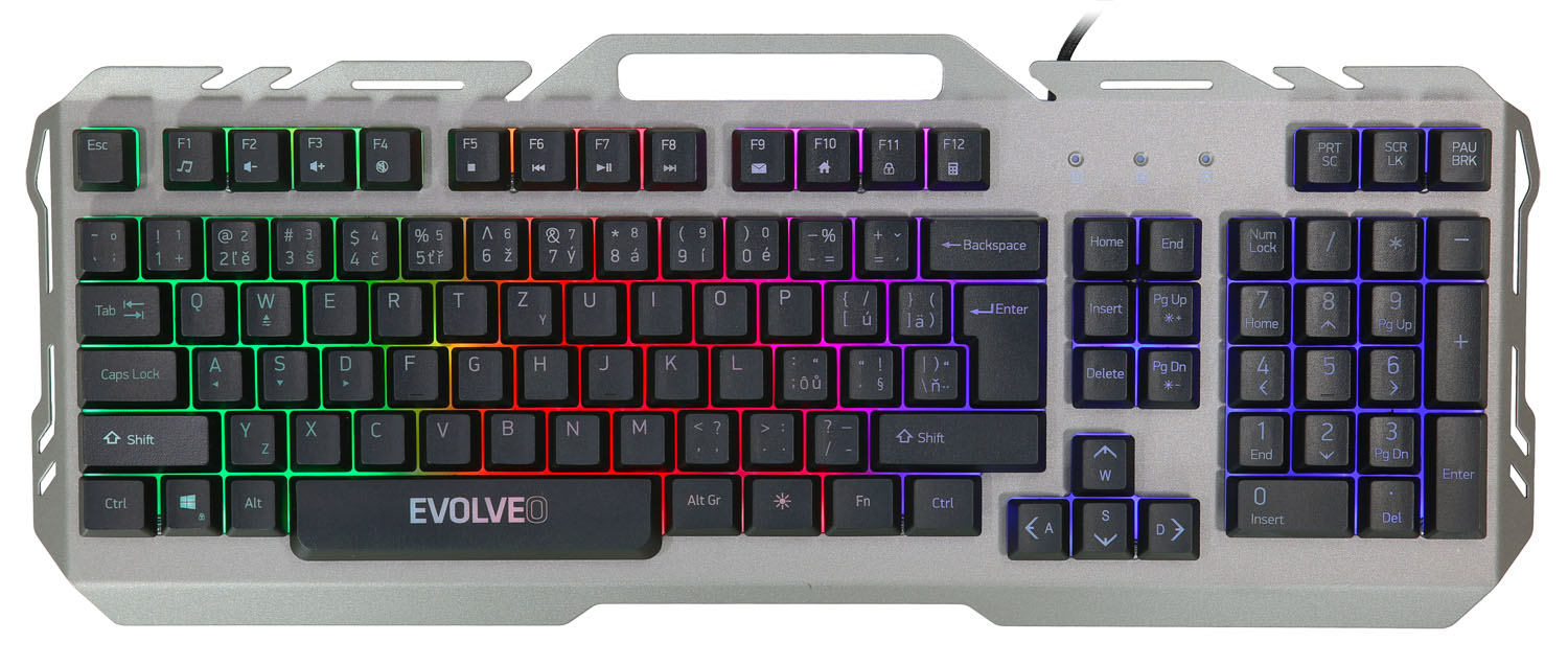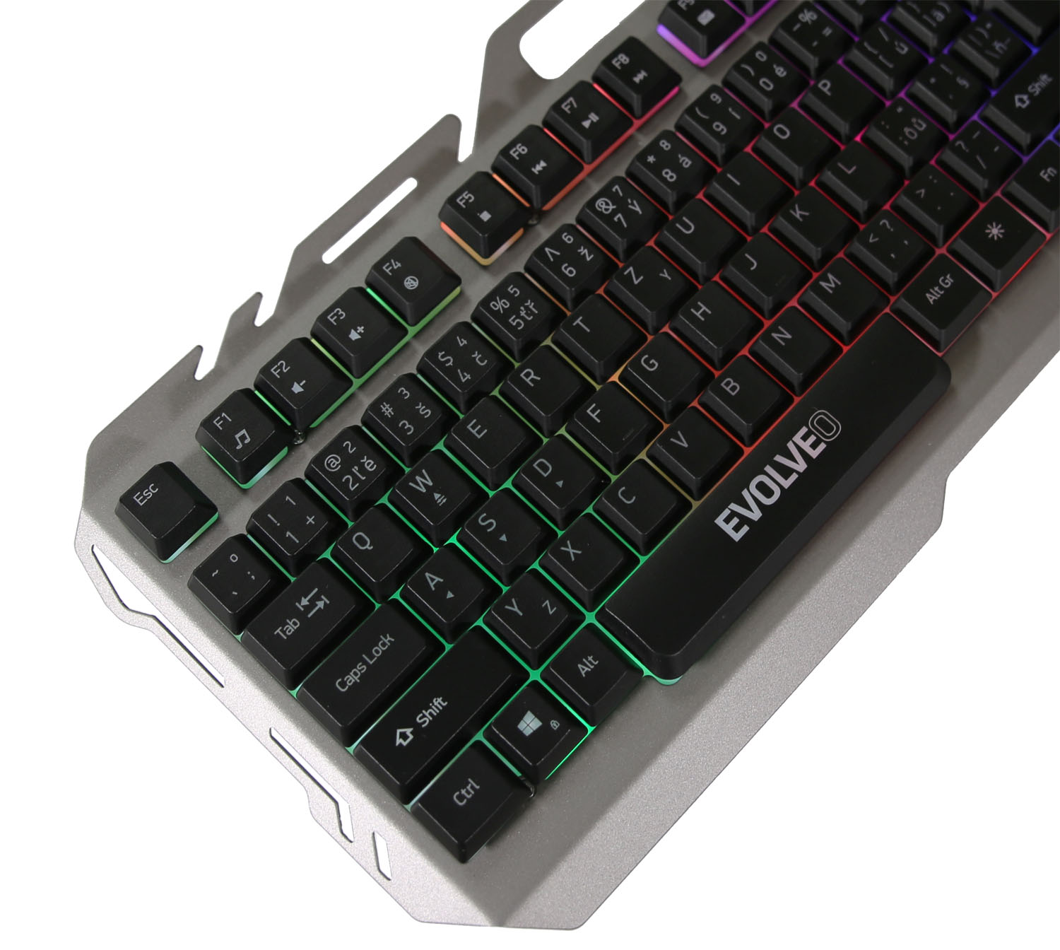 Novinka v nabídce klávesnic značky EVOLVEO se svým futuristickým designem a použitými materiály odlišuje již na první pohled od běžných klávesnic aktuálně nabízených na trhu. Klávesnice má kovové tělo, což zaručuje pevnost, odolnost i stabilitu. Atraktivní design je podpořen neonovým podsvětlením ve čtyřech volitelných režimech s možností regulace intenzity.