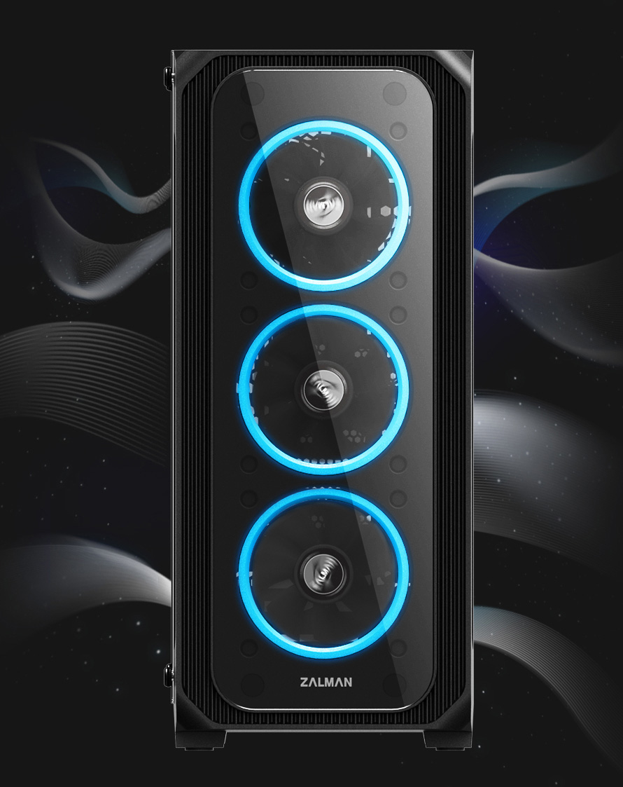 Vysoká kvalita provedení a použitých materiálů, čelní a boční průhledný panel z tvrzeného skla o síle 4T, povrchová úprava v atraktivní černé barvě a čtyři 120mm předinstalované ventilátory s efektním kruhovým RGB LED podsvícením nenechají nikoho na pochybách, že mají před sebou jeden z top produktů značky Zalman.
