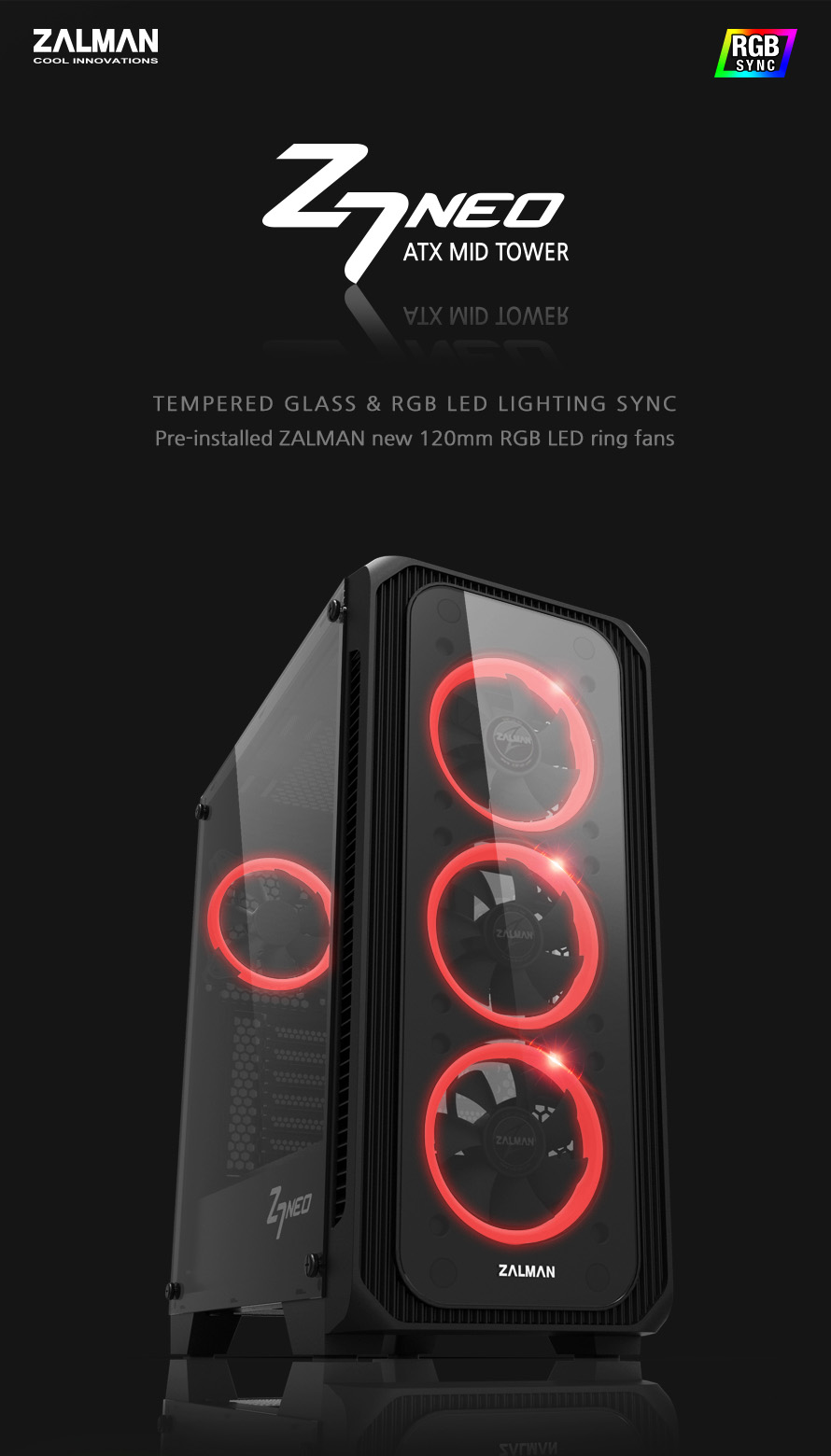 Nová PC skříň formátu ATX Mid-Tower Zalman Z7 Neo podporuje desky formátu Mini-ITX, mATX ale také ATX. Přední část skříně je osazena třemi 120mm ventilátory. Další 120mm ventilátor je umístěn v zadní části skříně.  Další dva ventilátory (120 nebo 140 mm) lze přidat do horního panelu. Maximální výška vhodného CPU chladiče pro tuto skříň je 165 mm, maximální délka grafické karty pak 355 mm. Ve spodní části skříně je vyčleněn prostor pro zdroj maximální délky 180 mm. V případě volby vodního chlazení je vyčleněn prostor pro radiátory chlazení od 120 mm do 360 mm. Skříň má také velký odnímatelný magnetický prachový filtr v horní části.