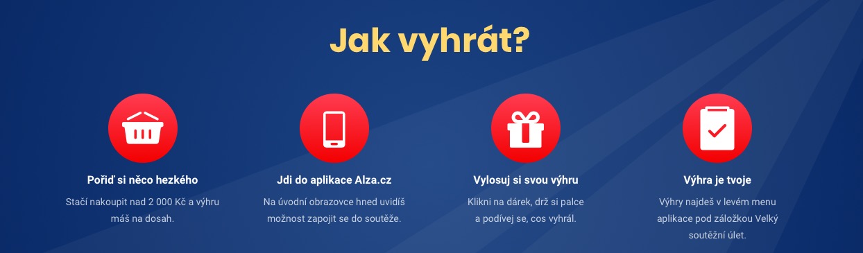 Pokud byste se rádi do soutěže o obrovské množství skvělých cen v čele s iPhony XR či PlayStationy 4 zapojili, stačí na Alze nakoupit nad 2000 korun v případě Česka a nad 75  € v případě Slovenska a poté v mobilní aplikaci Alza vylosovat svou výhru. Tu vám aplikace prozradí okamžitě a vy už pak jen doladíte detaily ohledně jejího doručení. Do soutěže se navíc můžete zapojit pokaždé, když na Alze nakoupíte za danou částku – teoreticky tedy každý den až do 7. června 2019. Mějte však na paměti, že losovat můžete vždy jen jednou denně. Pokud tedy na Alze nakoupíte v jeden den vícekrát nad dva tisíce, losování se protáhne na více dní.