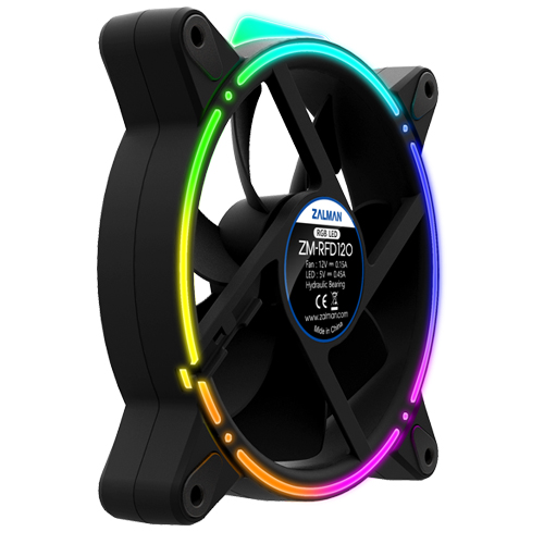 Ventilátor chlazení Zalman ZM-RF120 má průměr 120 mm, předinstalované antivibrační podložky, 4pinový konektor, odolná hydraulická ložiska a především oboustranné efektní RGB LED podsvícení. Nový ventilátor nese zřetelný rukopis značky ZALMAN. Vyznačuje se vysokou kvalitou provedení a použitých materiálů s deklarovanou odolností 40 000 provozních hodin. Sedm lopatek ventilátoru v odolném černém rámu v originálním designu ZALMAN je uloženo na hydraulickém ložisku, které garantuje tichý chod bez zahřívání, je odolné nárazům i vibracím, má vysokou spolehlivost a odolnost.