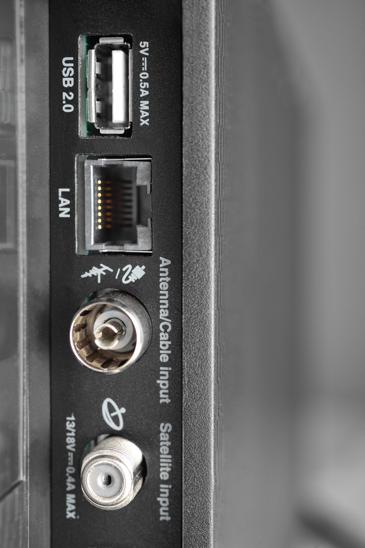 Zabudovaná obrazovka má rozlišení HD Ready, což znamená 1366 x 768 bodů, přesná úhlopříčka je 31,5″, tedy 80 cm. Televizor pohání čtyřjádrový procesor, který se stará i o příjem hybridního televizního vysílání HbbTV 1.5, zpracování obrazu a také o vstupy výstupy. Ty tu najdete v podobě dvojice HDMI, výstupu na sluchátka, digitálního optického audio výstupu a nechybí ani USB 2.0 a Ethernet (LAN). Na internet se však můžete také napojit přes bezdrátovou Wi-Fi (802.11 až „n“, 2,4 GHz) a zabudována je i dvojice reproduktorů napojená na zesilovač o výkonu 2x 5 W (RMS). Reproduktory, jak je zvykem, vyzařují do podstavce.