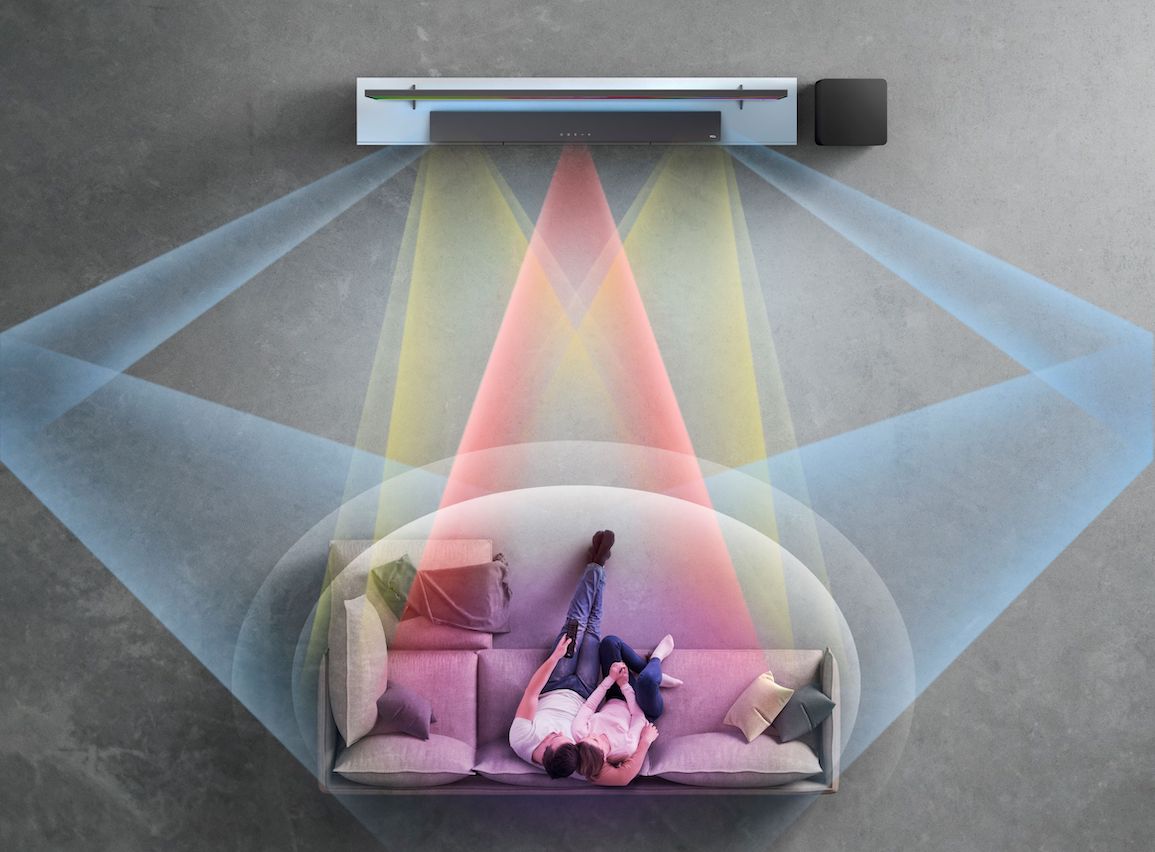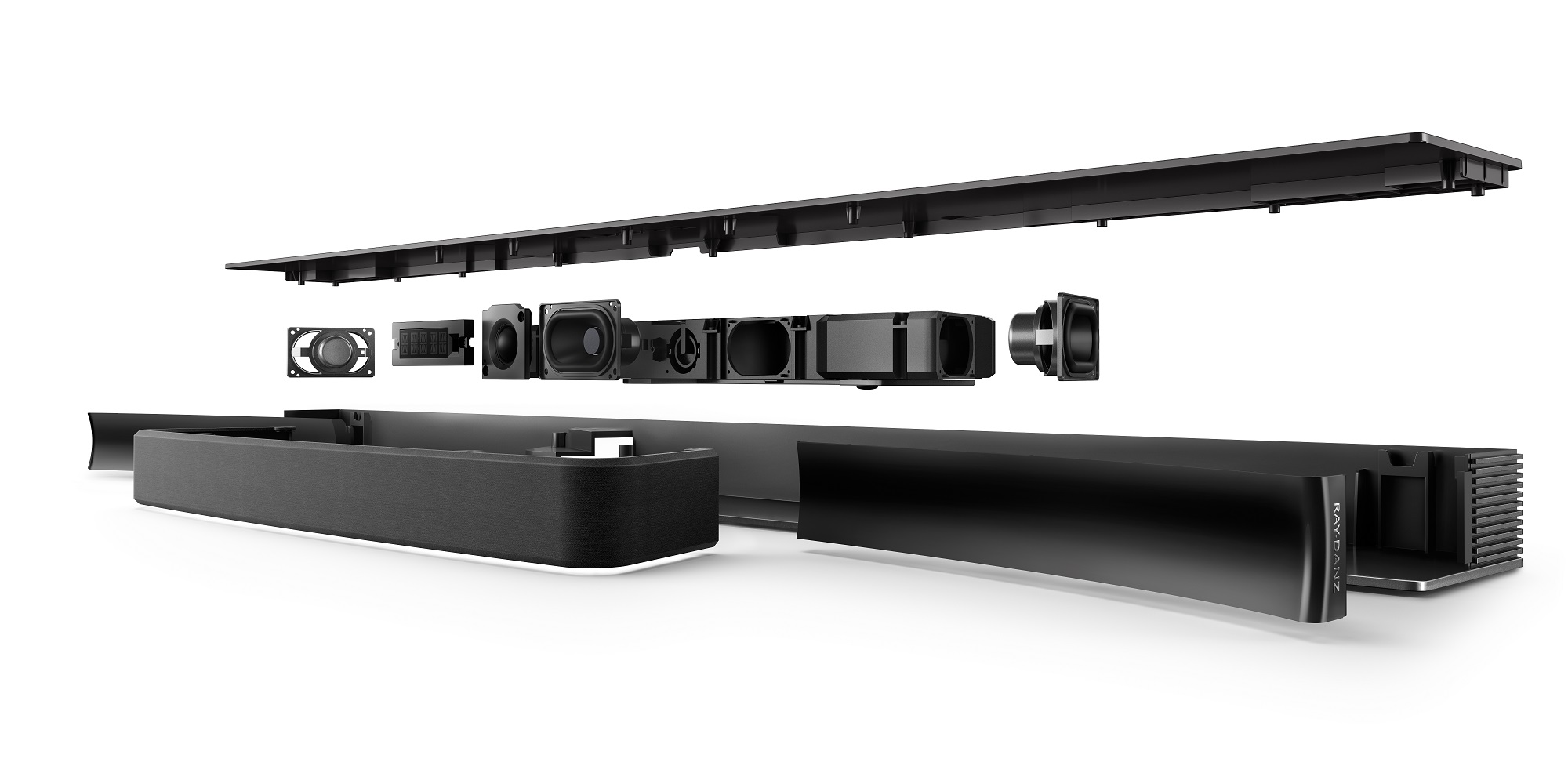 Originální konstrukční řešení zpětného ohnutí u bočních reproduktorů směřuje zvuk na akustické odražeče, které ohýbají zvuk do přesného úhlu pro vytvoření přirozeného dozvuku a na rozdíl od mainstreamového digitálního zpracování zvuku tak zajistí širší zvukové pole. Pro silné basy, které doslova otřesou podlahou je určen bezdrátově připojený subwoofer. Centrální kanál s dedikovanými, dopředu vyzařujícími reproduktory, zajistí jasné dialogy a lokalizaci hlasu u obsahu s mluveným slovem