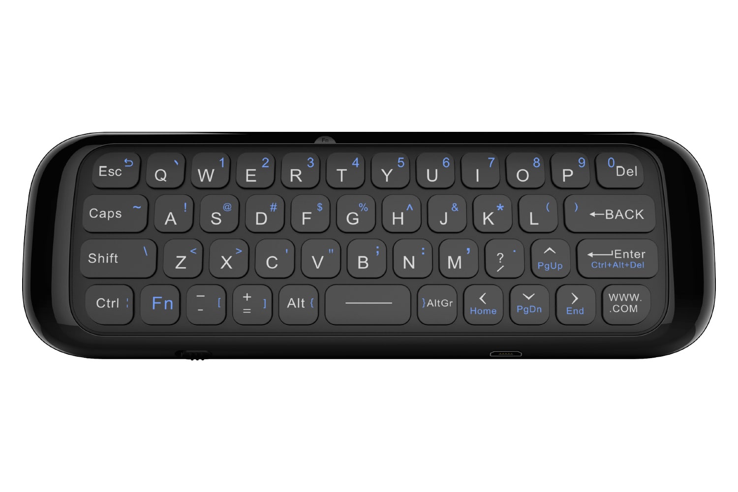 Dalším způsobem ovládání je zadávání textových příkazů. Na lícní straně ovladače je Qwerty klávesnice pro snadné, rychlé a pohodlné zadávání textu. Ovladač dále disponuje jedním programovatelným tlačítkem, které je schopné se naučit infračervený příkaz z jiného dálkového ovladače, například základní příkaz „zapnutí televize“. Učící se funkce je kompatibilní s 99 % ovladačů na trhu.