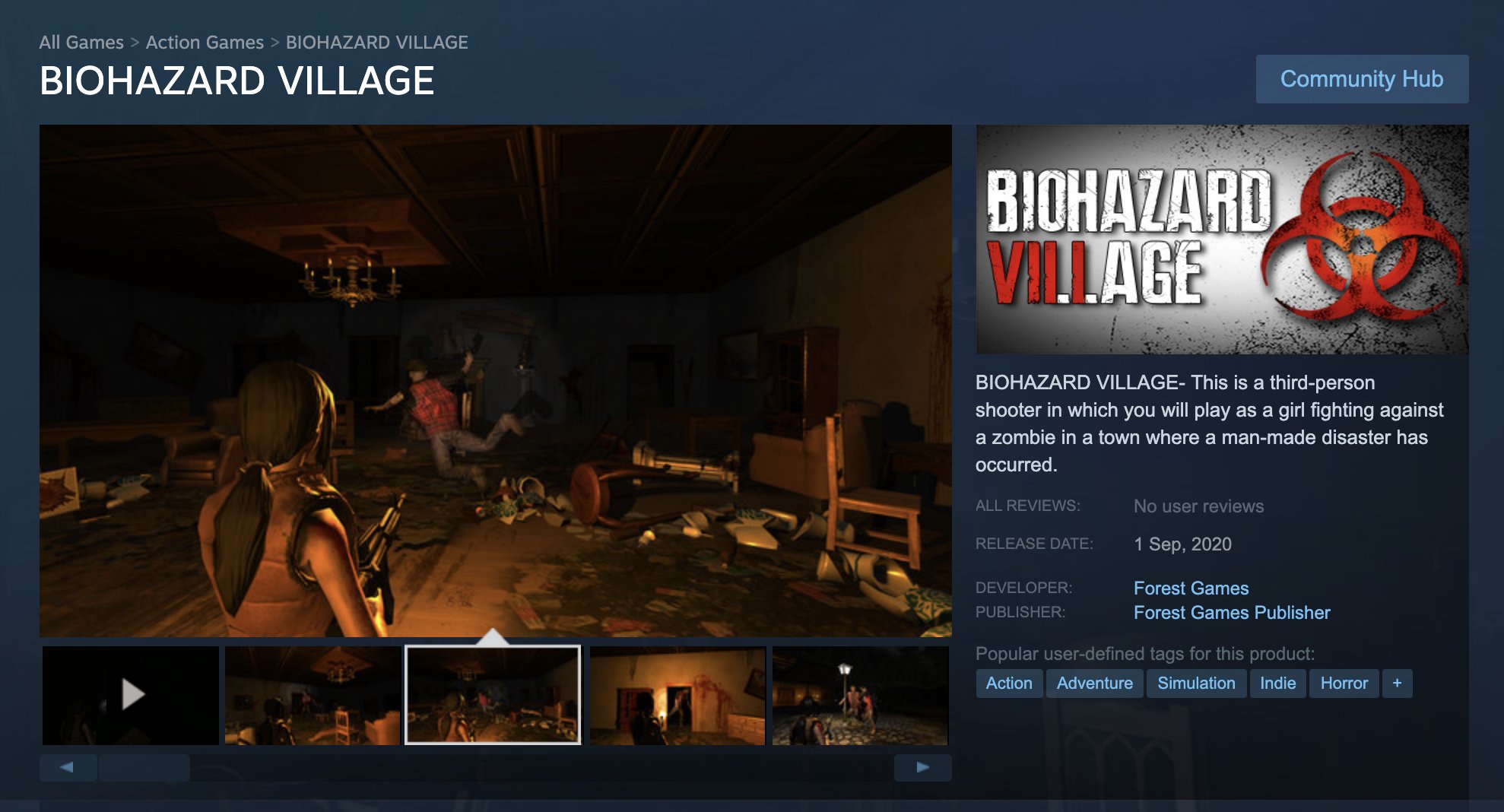 Už víme, že za zhruba půl roku by na next-gen konzole měl dorazit nový Resident Evil Village. Tato hra bude opět z pohledu první osoby, kdy se budeme bránit proti místním šílencům, ale také vlkodlakům. Nicméně si někdo řekl, že to asi není tak špatný námět a dalo by se na tom vytřískat. A tak se na Steamu objevila příšerná kopie této hry.