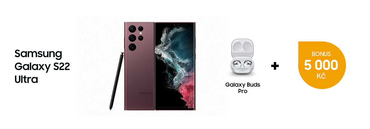 Samsung Galaxy S22 Ultra začíná na ceně 31 990 Kč. V rámci předobjednávek, které probíhají jen do 24. února, získáte kromě sluchátek Buds Pro ještě vyšší bonus 5 000 Kč. Prodeje telefonu startují 25. 2.