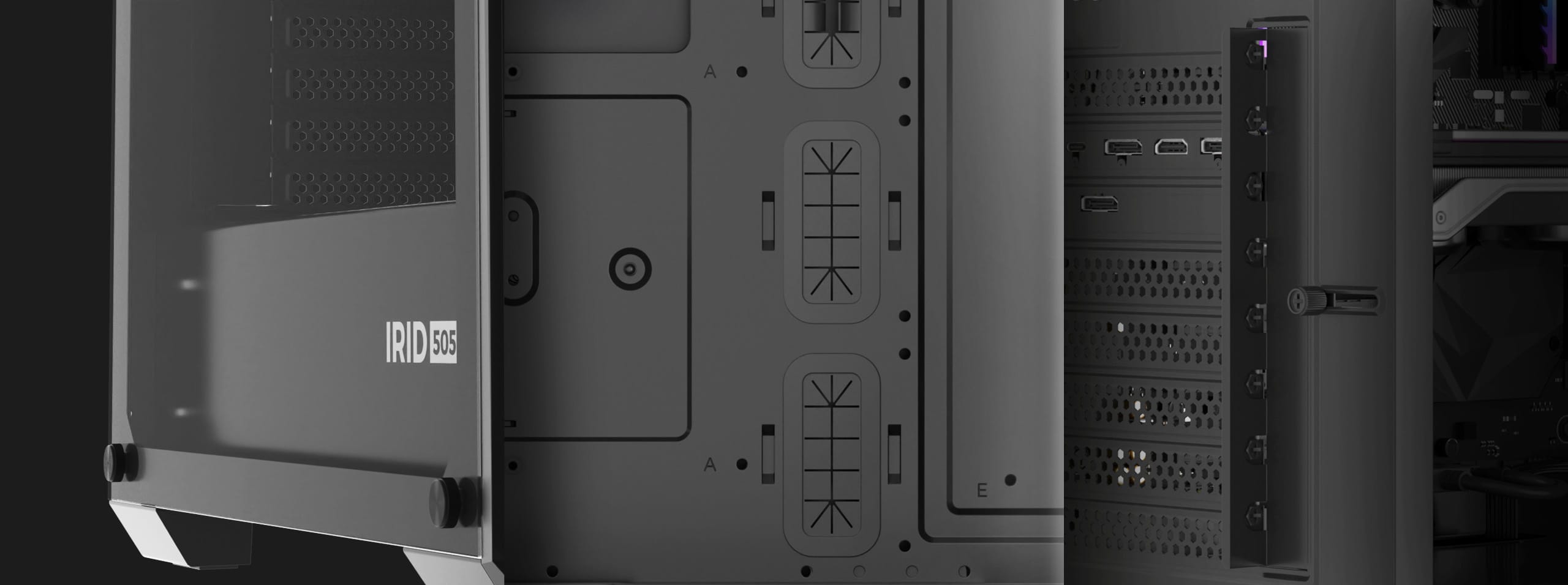 Genesis Irid 505F má pět 120mm ventilátorů Genesis Oxal, které dosahují maximální rychlosti 1300 rpm. Navíc, ve srovnání s předchozím modelem Iri505, má tato skříň přední filtr s oky menšími než 0,8 mm, tedy menšími než běžné prachové filtry. Lze tedy očekávat, že skříň poskytne důkladnější filtraci vzduchu. Vysoký výkon ventilátorů u skříně Irid 505F zajistí efektivní chlazení počítačových komponent s příkonem přibližně 500 W. Skříň podporuje instalaci vodního chlazení AIO, má sedm pozic pro 2,5palcové disky a dvě pozice pro disky 3,5 palců. Boční panel z temperovaného skla dá vyniknout instalovanému hardware.