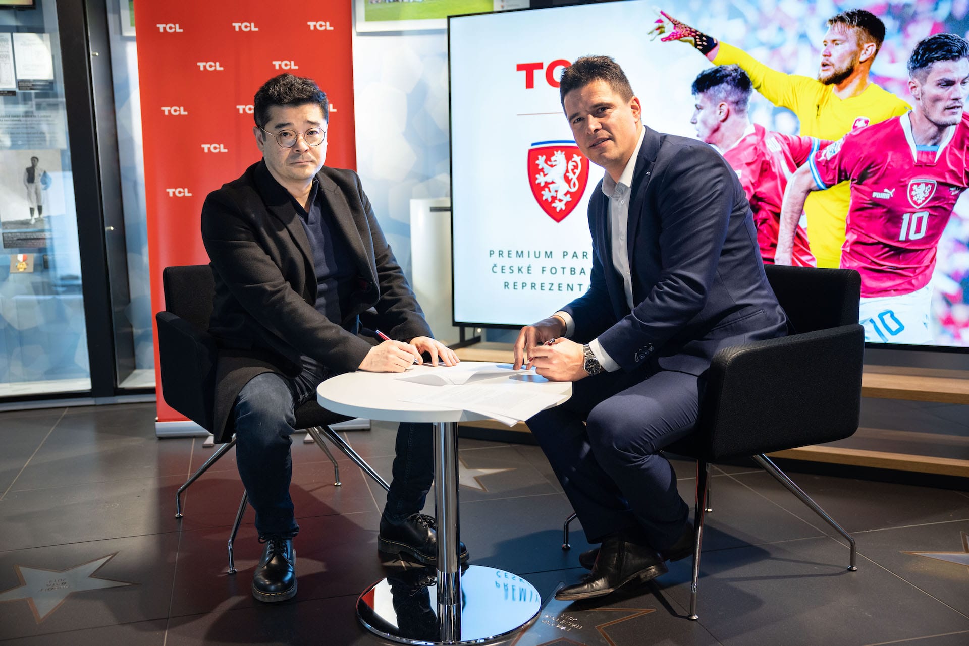 Českou fotbalovou reprezentaci při slavnostním podpisu smlouvy zastupoval její trenér Jaroslav Šilhavý, za agenturu STES byl podpisu smlouvy přítomen Tomáš Sluka, předseda představenstva, a za TCL Electronics Easton Kim, ředitel marketingu pro Evropu. Podpisu smlouvy přihlížel i ambasador značky TCL v České republice, bývalý český fotbalový obránce a reprezentant Tomáš Ujfaluši. Zástupci TCL obdrželi z rukou reprezentačního trenéra reprezentační dres.