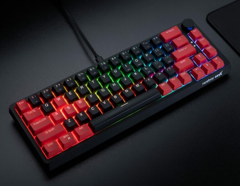 Tisková zpráva: Nová klávesnice ORYX K700X PRO od značky Niceboy stojí svými funkcemi a kvalitou na vrcholu vlastní řady herních klávesnic. Zpracování v kompaktním designu bez numerického bloku ponechává větší prostor pro flexibilní pohyb myši. Klávesnice je osazena mechanickými spínači Gateron Brown a software ORYX umožňuje individuální nastavení maker a podsvícení.