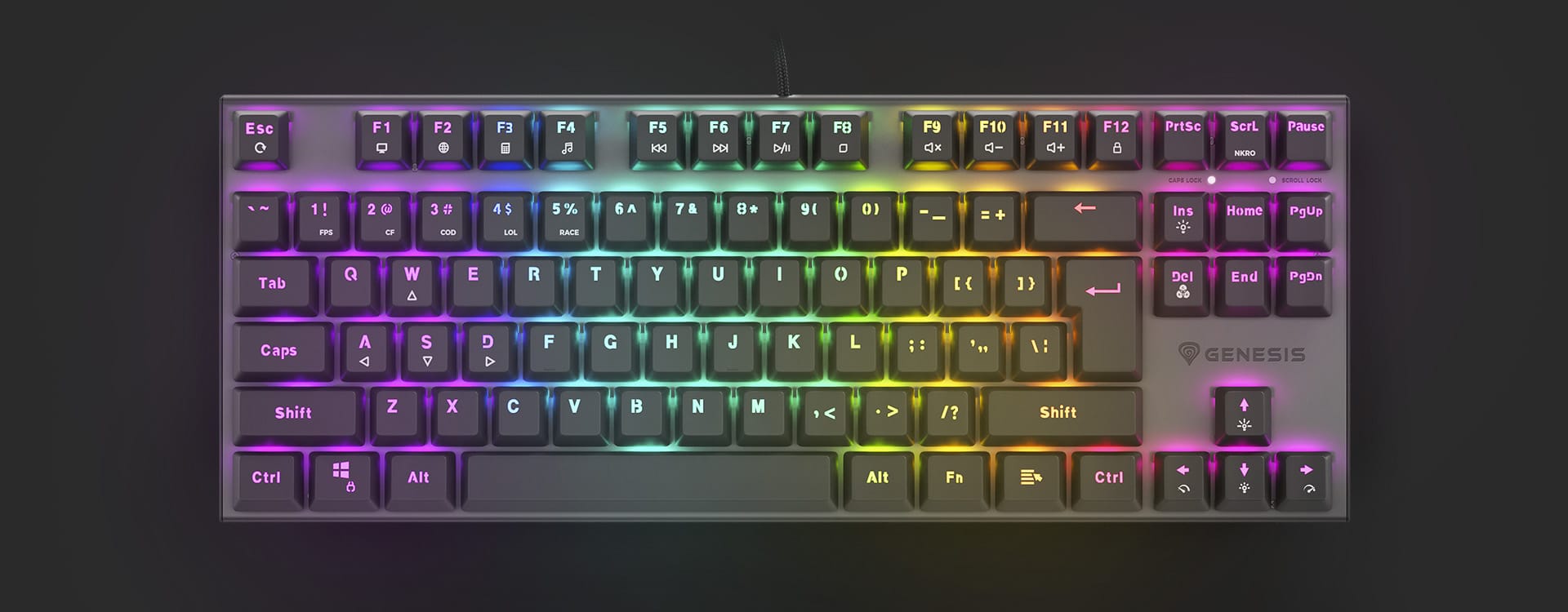Tisková zpráva: Genesis představuje cenově dostupnou mechanickou klávesnici Thor 303 TKL Black. Klávesnice má nejen klasický herní design ale navíc několik velmi užitečných funkcí. Model Genesis Thor 303 TKL je vybavena vyměnitelnými mechanickými spínači Outemu Red a zaujme svým RGB podsvícením s efektem Prismo a 25 dalšími světelnými režimy. Klávesnice má funkci N-Key Rollover, kterou vyžadují opravdoví hráči počítačových her. Tato funkce jim umožňuje stisknout současně libovolný počet kláves. Klávesnice má navíc software pro uložení maker s možností přiřadit jednotlivým klávesám speciální funkce.