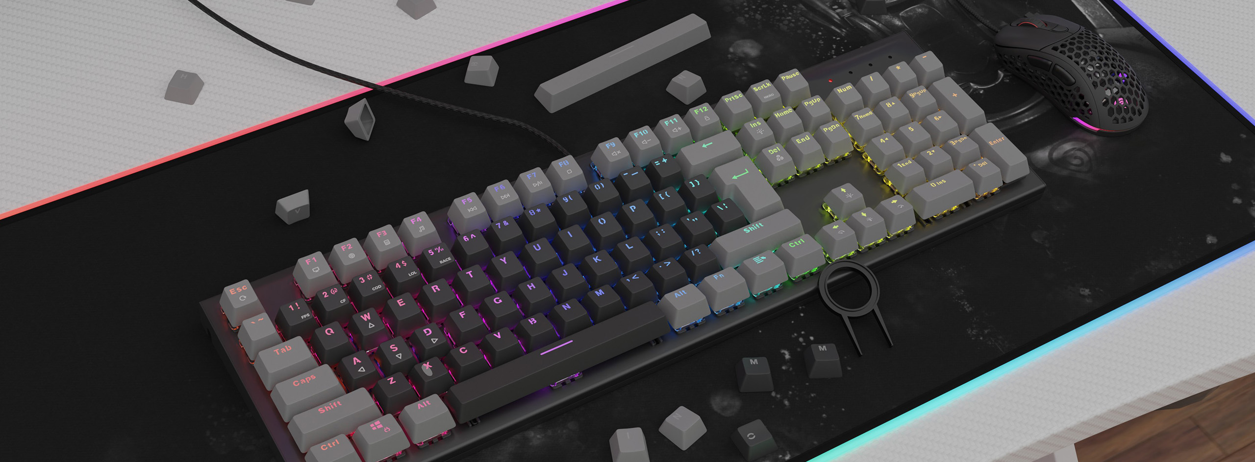 Genesis Lead 300 je sada odolných klávesnic vyrobených z plastu technologií double-shot v oblíbenému profilu OEM. Klávesy s vysokou odolností jsou vhodné pro klávesnice ANSI i ISO. Díky transparentnímu materiálu je zachováno i LED RGB podsvícení klávesnic. Jedna z klíčových funkcí tak není nijak omezena. Sada obsahuje také multimediální klávesy.