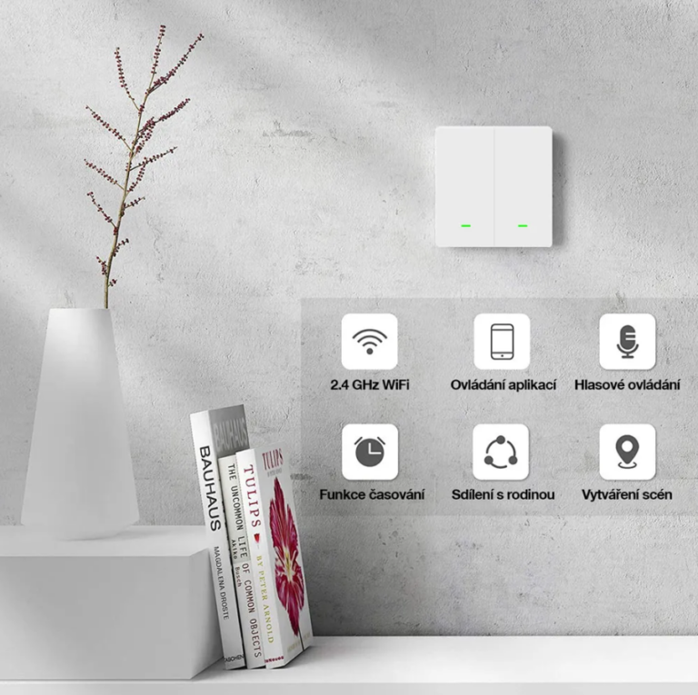 - Chytrý vypínač vhodný pro pohodlné, energeticky úsporné a bezpečné řešení pro ovládání osvětlení