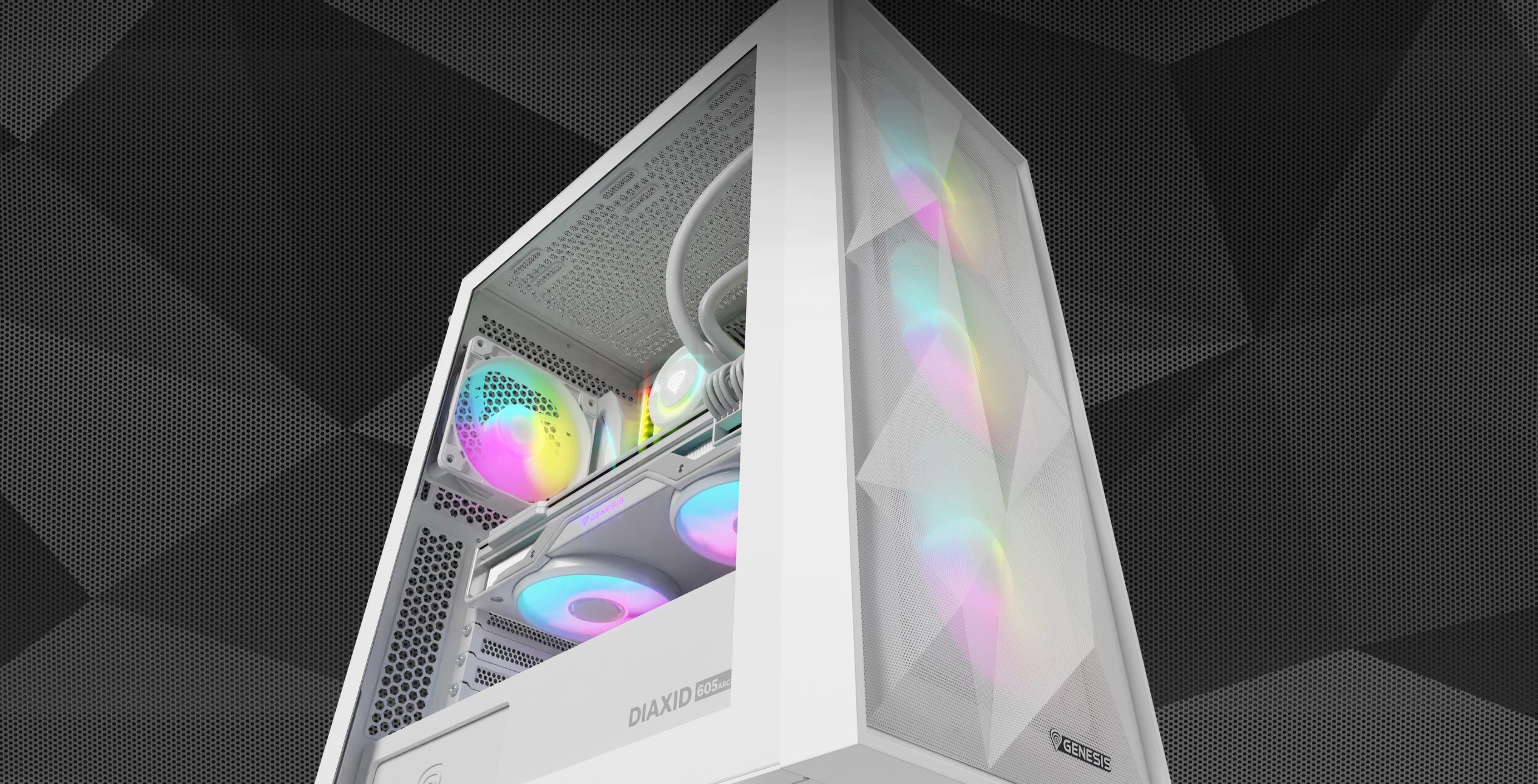 GENESIS Diaxid 605F a GENESIS Diaxid 605 ARGB jsou zcela nové herní počítačové skříně určené pro příznivce kompaktního designu, kteří očekávají kvalitní řešení ventilace a požadují možnost optimální montáže výkonných komponent, včetně chlazení AIO 420.