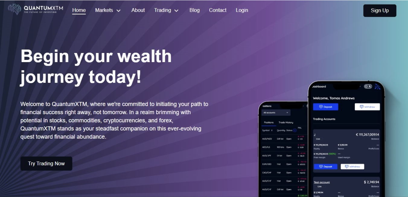 První věcí, kterou v této recenzi QuantumXTM.com zmíním, je vysoce kompatibilní a přístupný design této online obchodní platformy. Vývoj obchodní platformy Quantum XTM byl navržen tak, aby byla vysoce přístupná a kompatibilní za jakýchkoli okolností. Tato obchodní webová stránka je přístupná 24 hodin denně, sedm dní v týdnu, což umožňuje obchodníkům ji používat kdykoli chtějí z jakéhokoli místa, kde se nacházejí. Díky takové snadné dostupnosti mohou uživatelé obchodovat podle svého harmonogramu, ať už jsou doma, v práci nebo i na cestách.